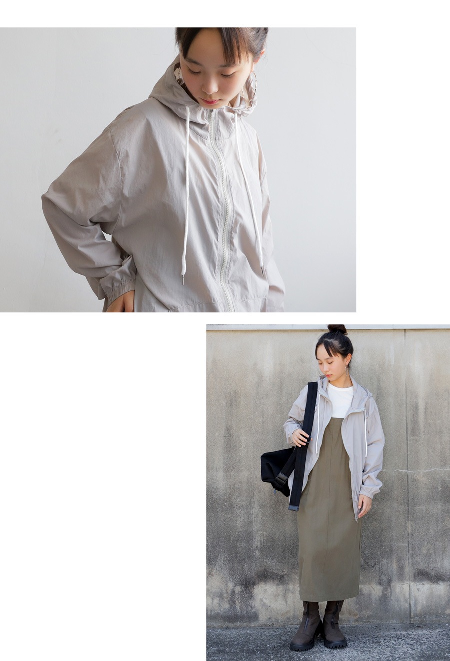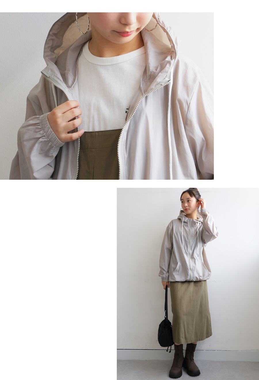 フード付きのデザインが、アウトドアやレジャーなどにも対応できる安心感をプラス。