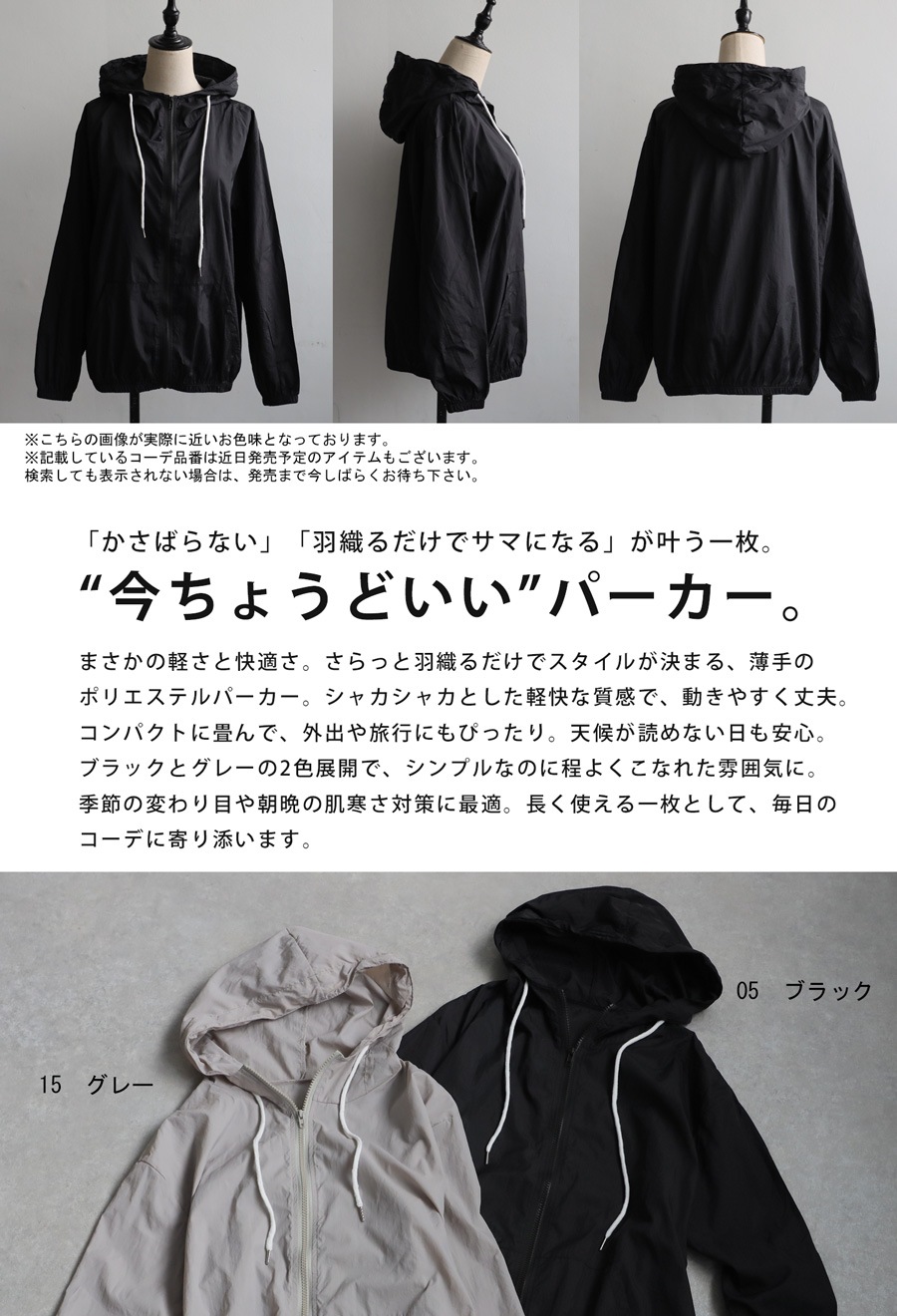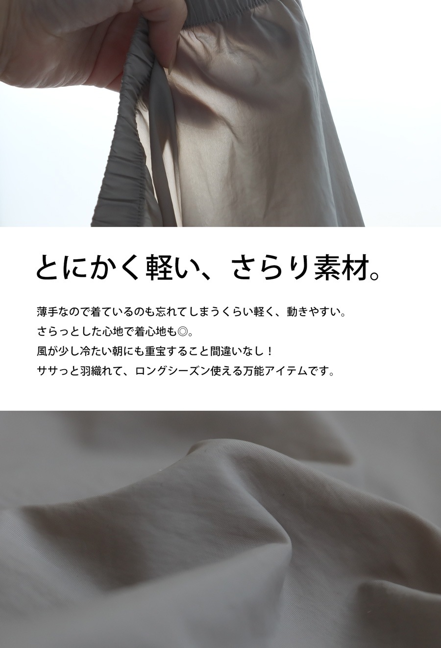風が少し冷たい季節や、肌寒い朝晩にぴったりの羽織りアイテムとして活躍します。