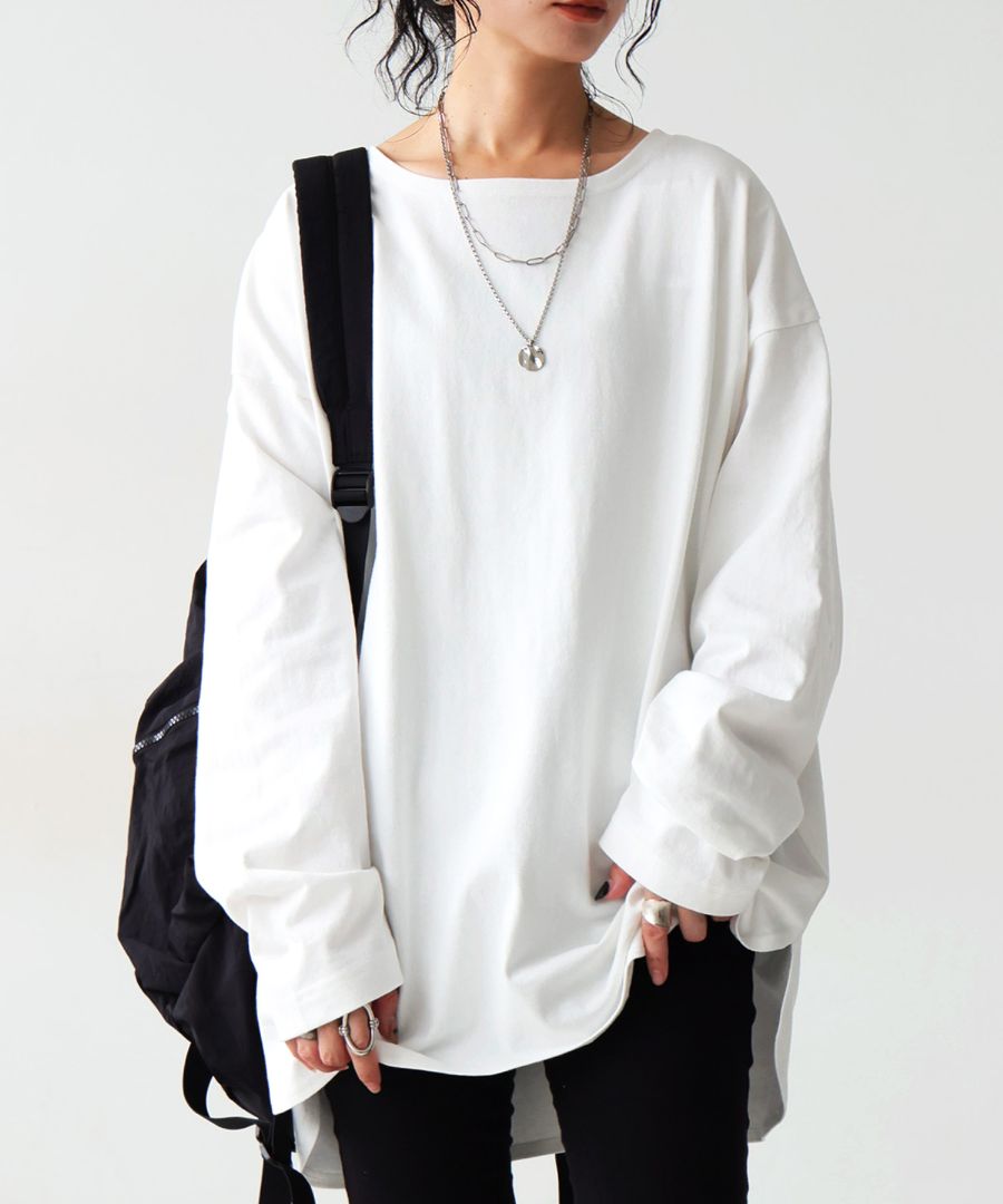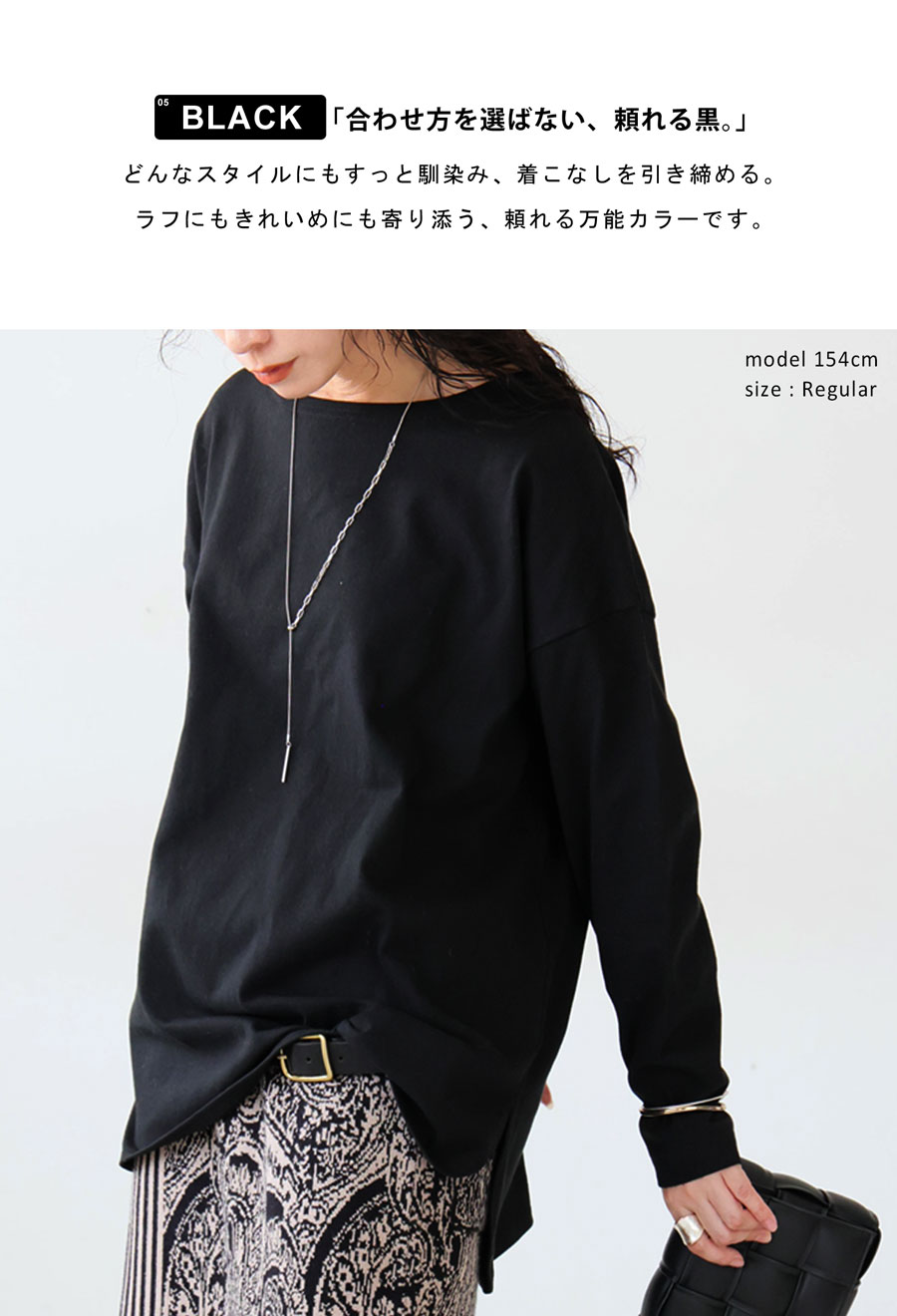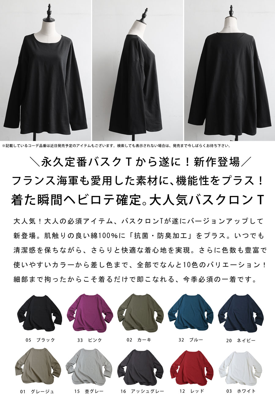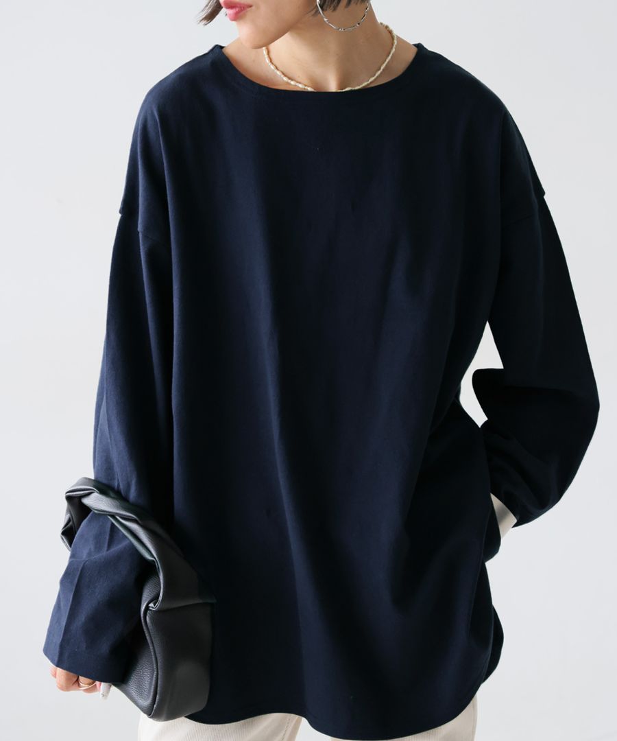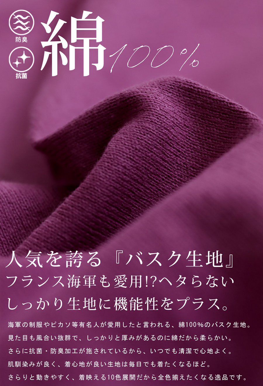 しっかりとした厚みのあるバスク生地を使用した、綿100%素材のロンTトップスです。