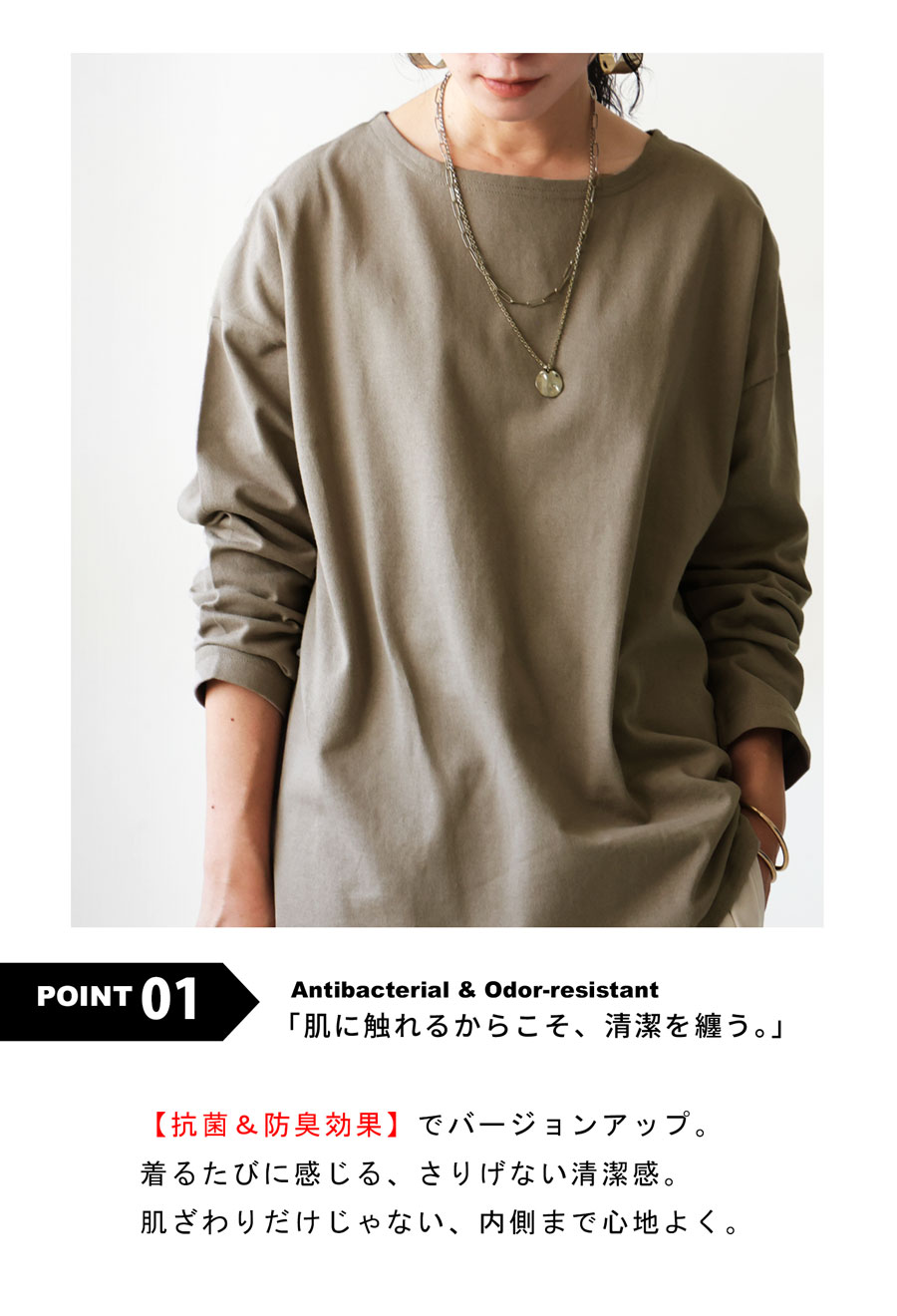 ロンT 綿100 抗菌防臭 レディース 長袖 カットソー 無地・再入荷 (80)メール便可