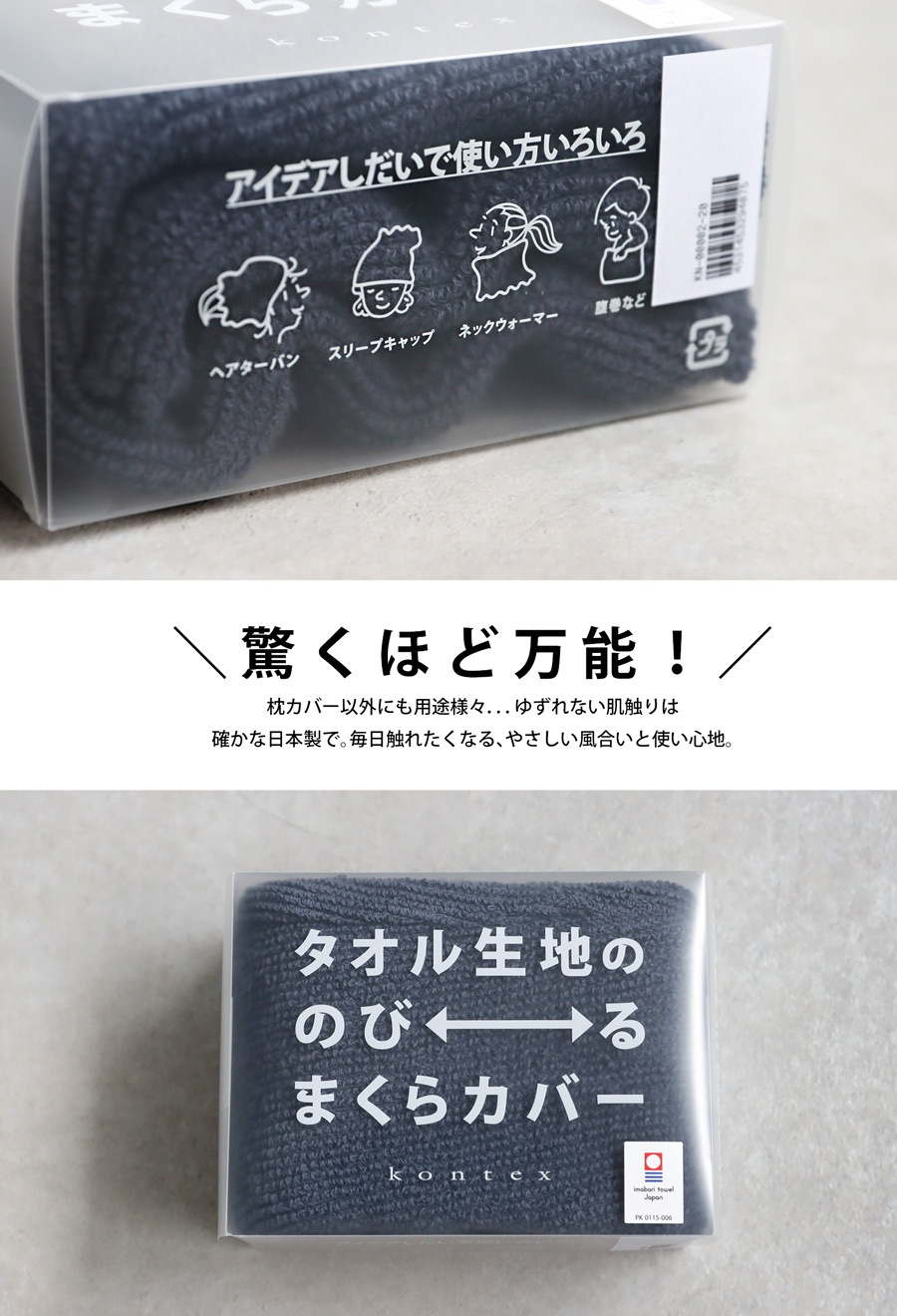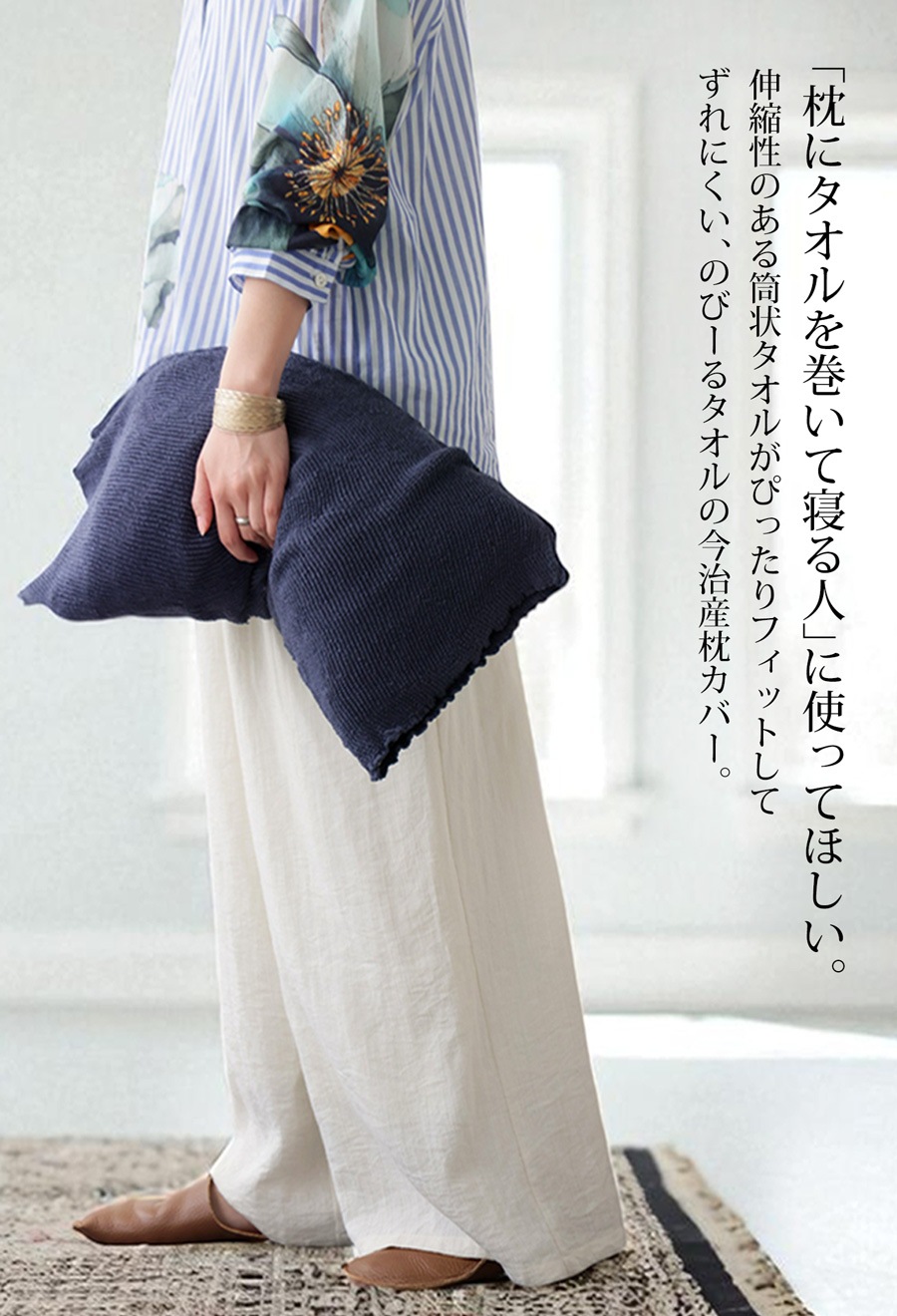 ふわふわとした肌ざわりが心地よい、今治産のタオル素材で仕立てたのびる枕カバーです。