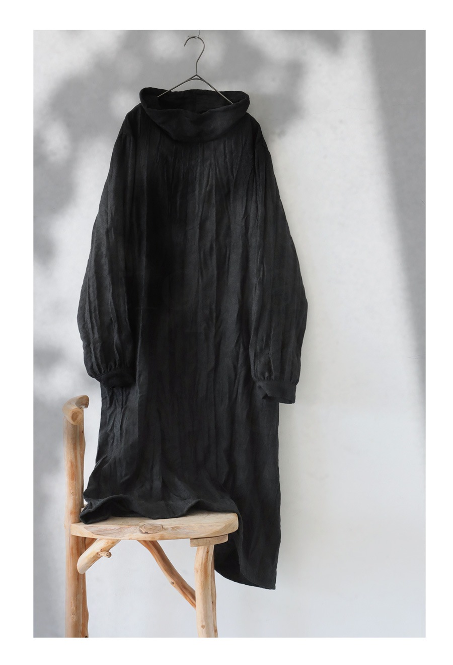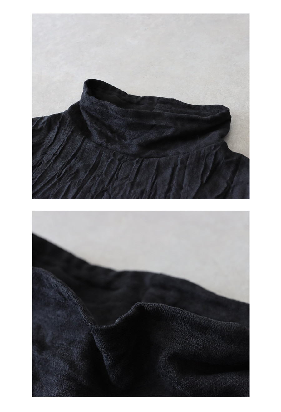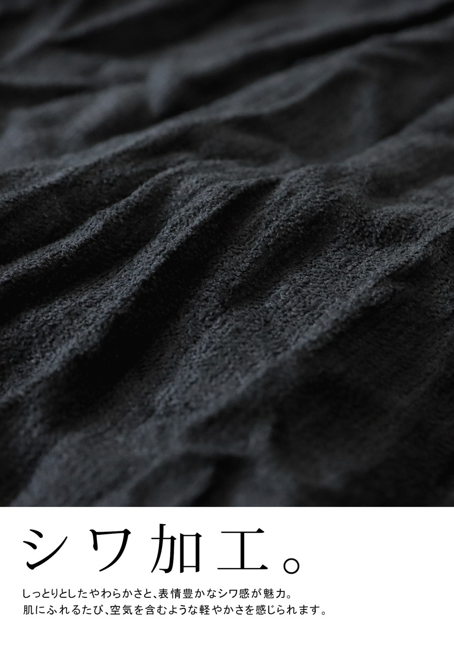 立体感のあるしわ加工が、陰影を生み出し、シンプルながらも印象に残る一枚に仕上がっています。