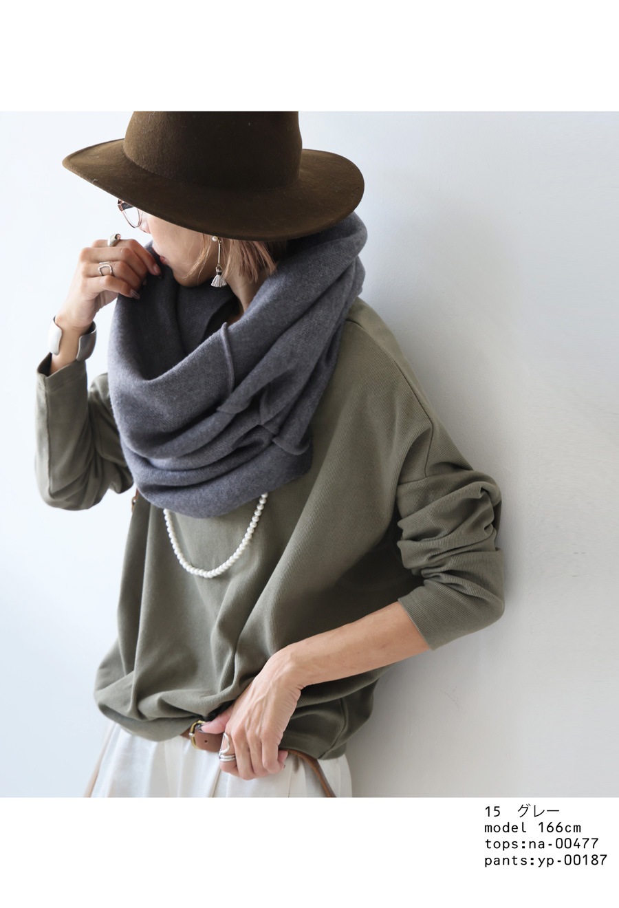 ふんわりとした柔らかい裏起毛素材が首元を優しく包み込み、空気のように軽やかな着け心地が魅力です。