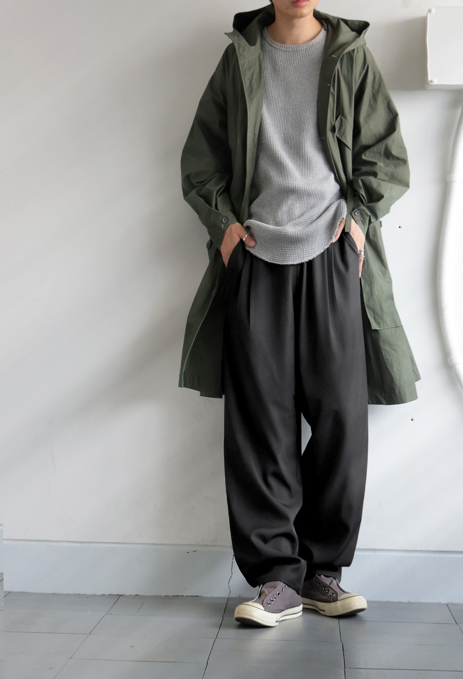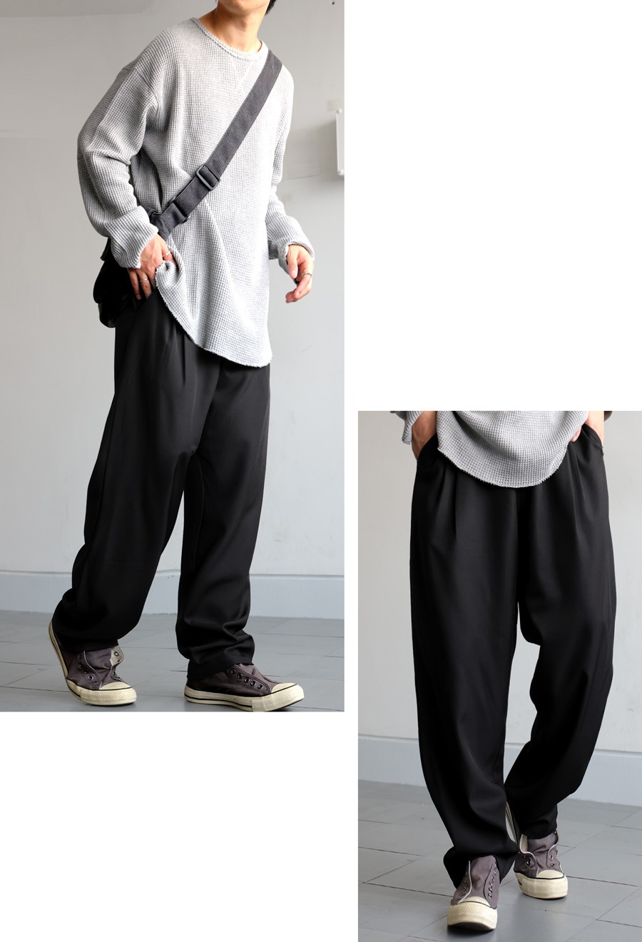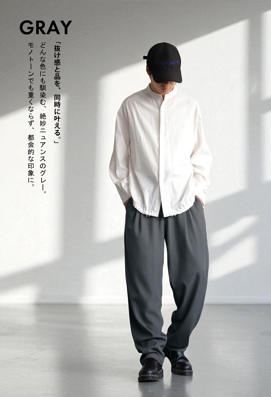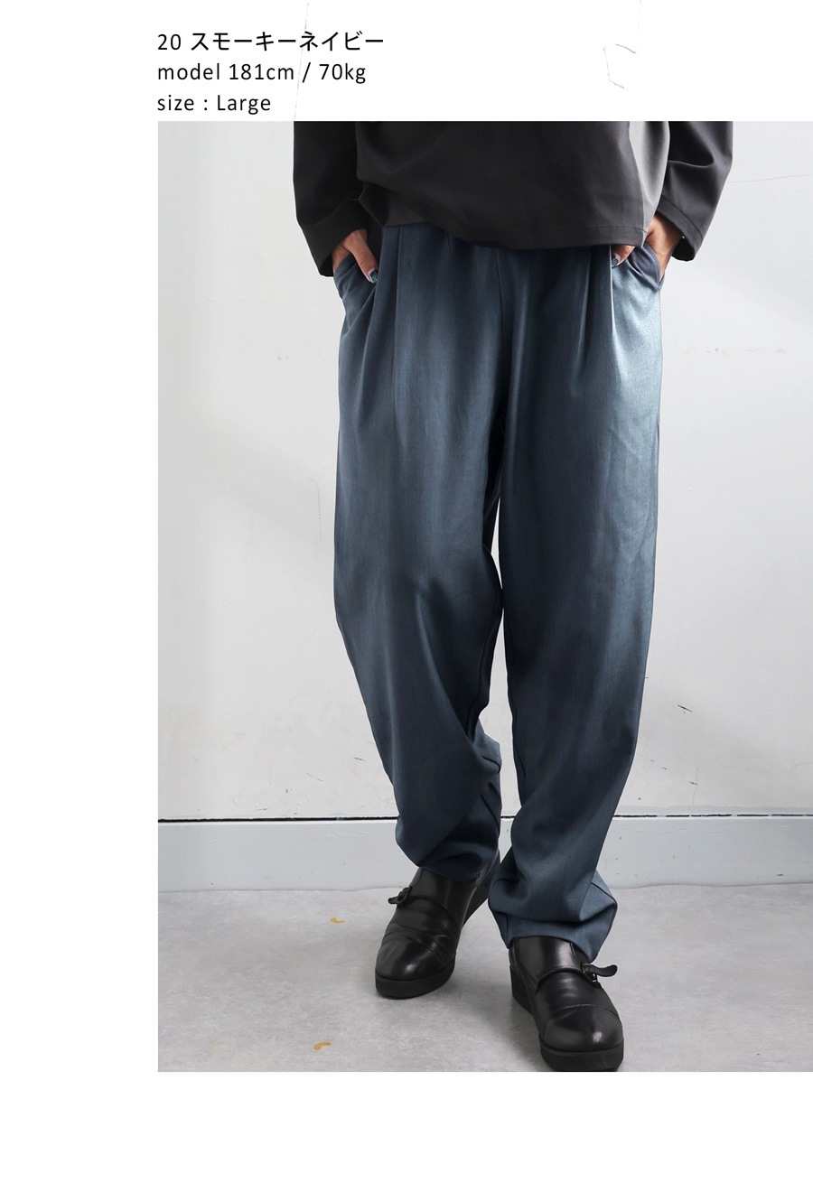 ゆったりとした穿き心地と、すっきり見えるシルエットを両立したテーパードパンツです。