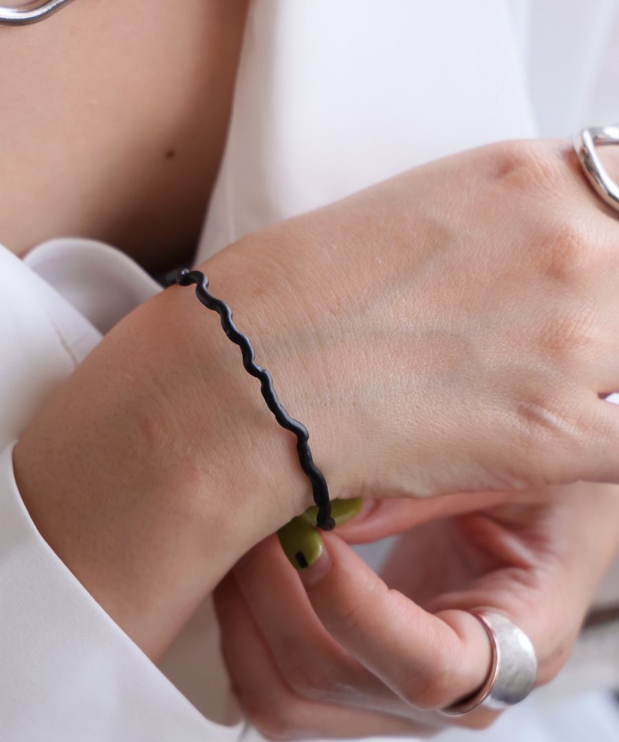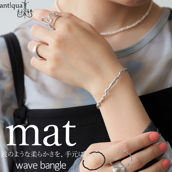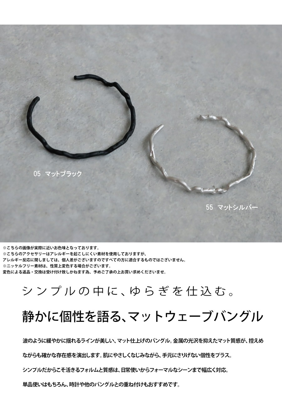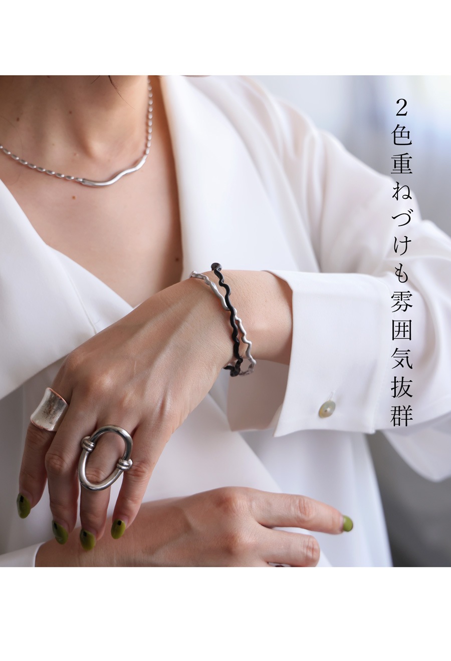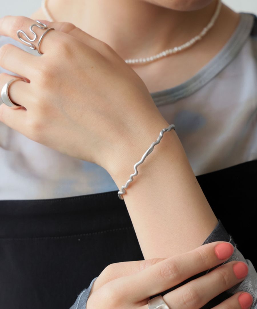 波打つような美しい曲線が手元を飾る、マット加工のウェーブバングルです。