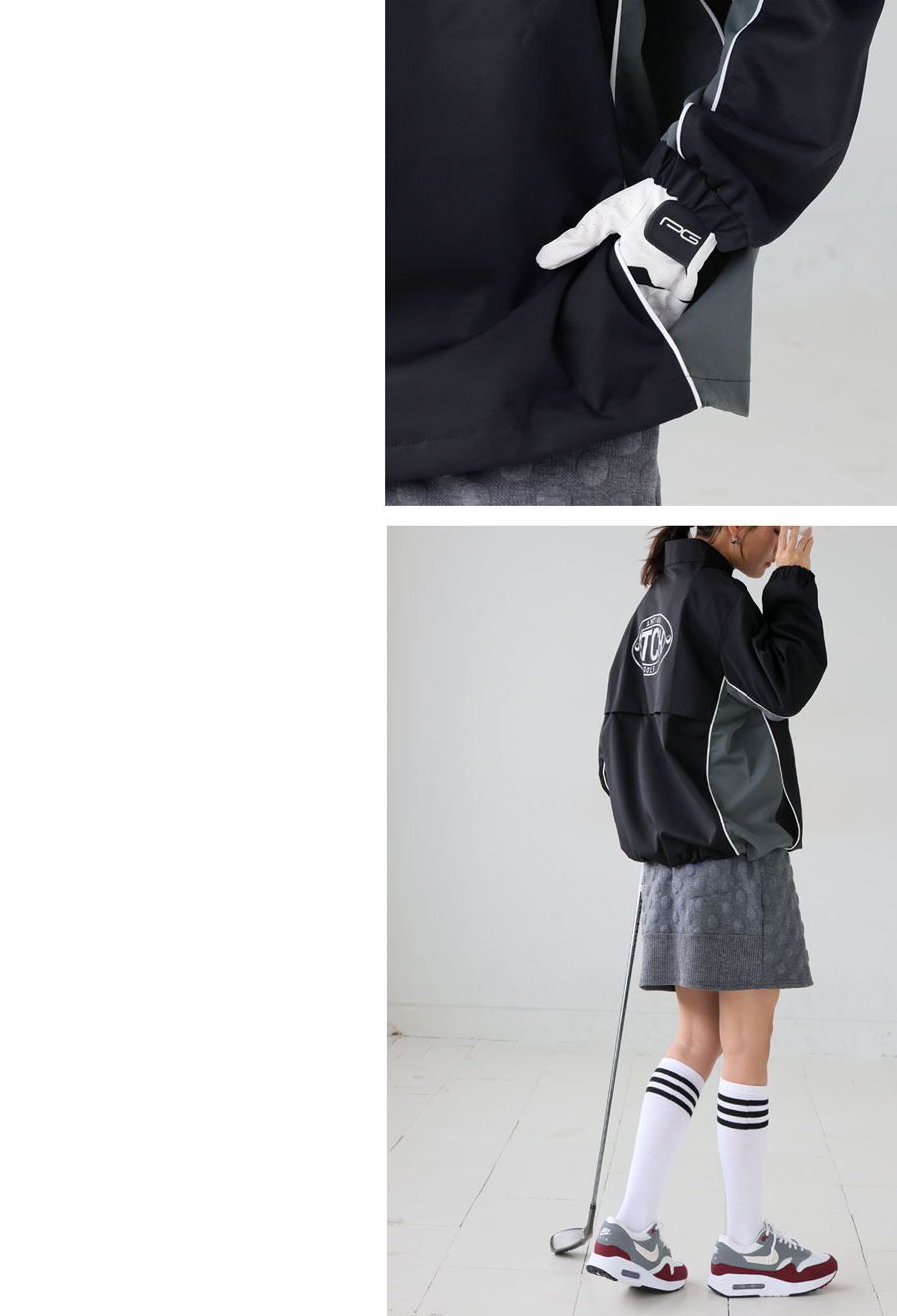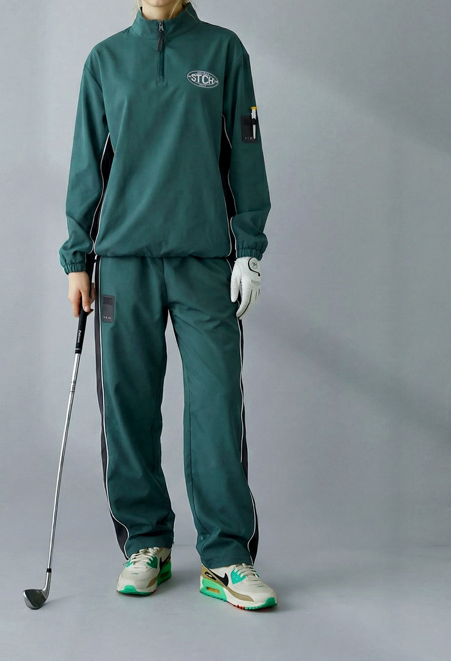 軽量でストレッチ性に優れたスポーツウェア素材は、ラウンド中の動きにもスムーズに対応します。