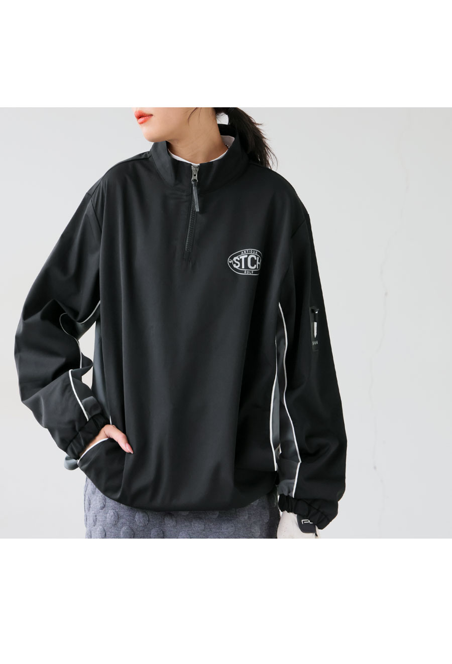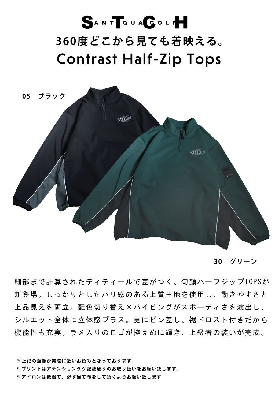配色切り替えが際立つ、ハーフジッププルオーバータイプのゴルフウェア。