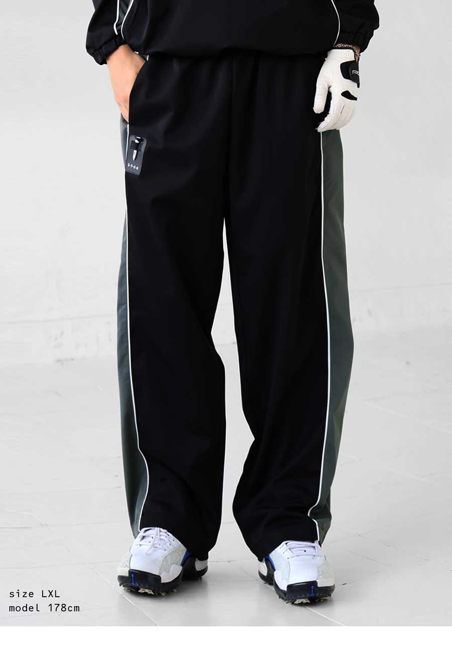 存在感ある配色デザインが目を引く、ストリート×ゴルフ対応パンツ。