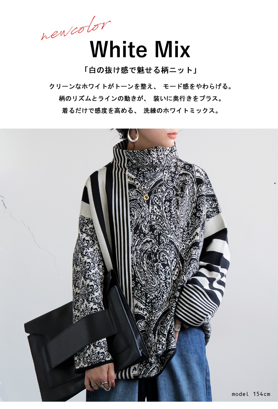 新たに追加されたホワイトミックスは、クリーンなホワイト(白・しろ・White)とシャープなブラックの対比がモード感を高め、冬の装いをフレッシュに演出してくれます。
