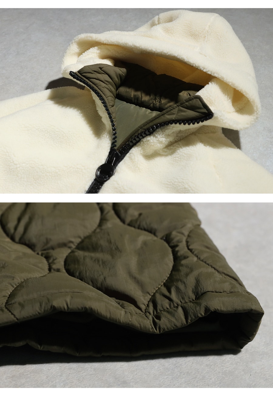 さらにフードの内側にもボアを施すことで、防寒性とデザイン性の両方を叶えています。