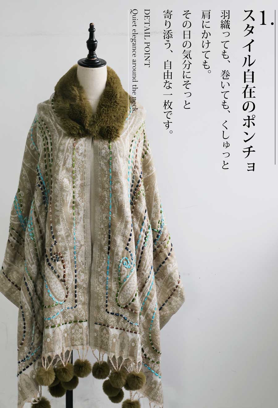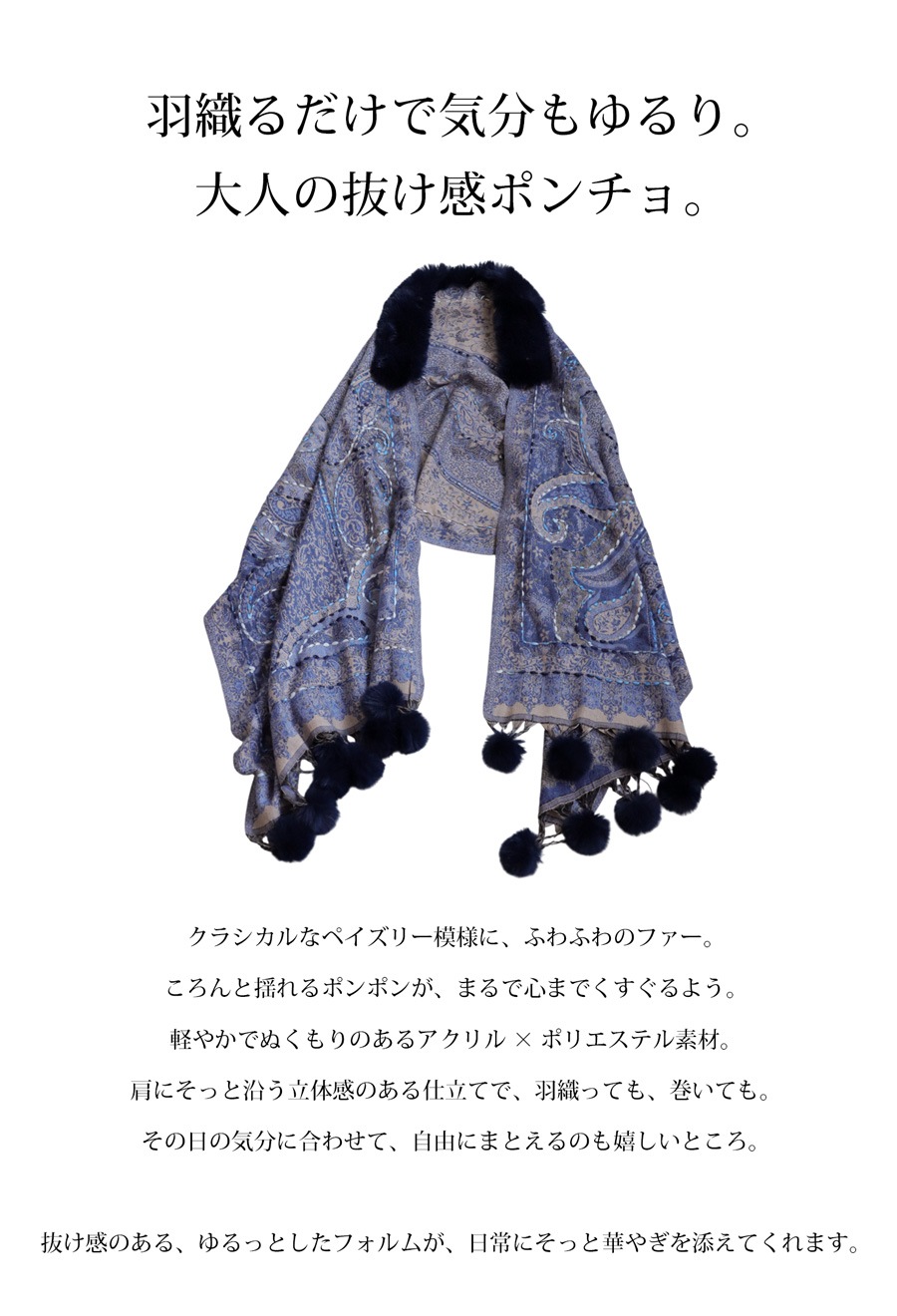 ファー付き ポンチョ レディース ストール マフラー 送料無料・メール便不可