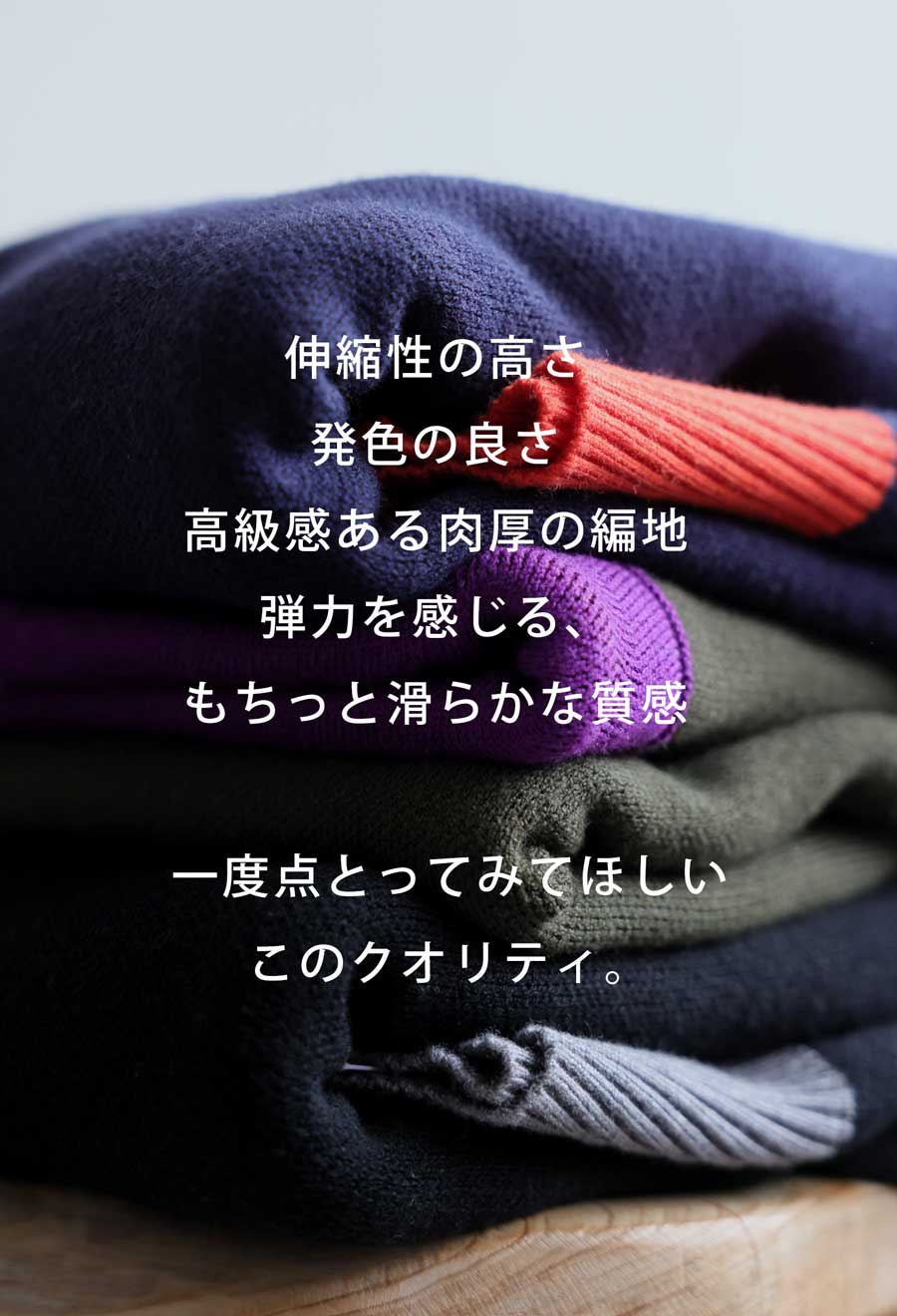 袖丈と裾にしっかりとしたリブを施すことで、メリハリのあるシルエットが生まれます。