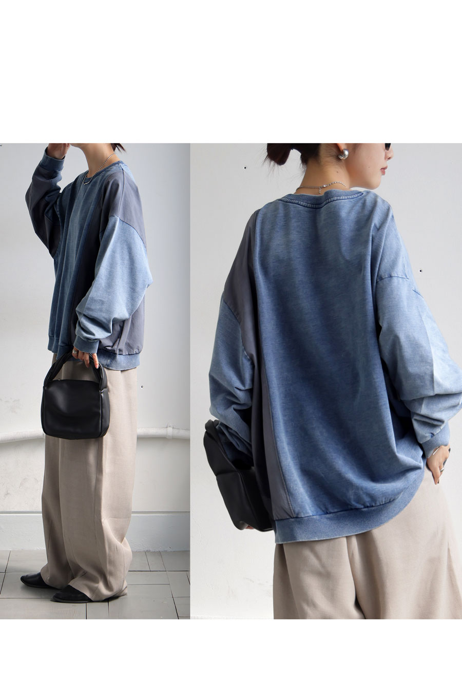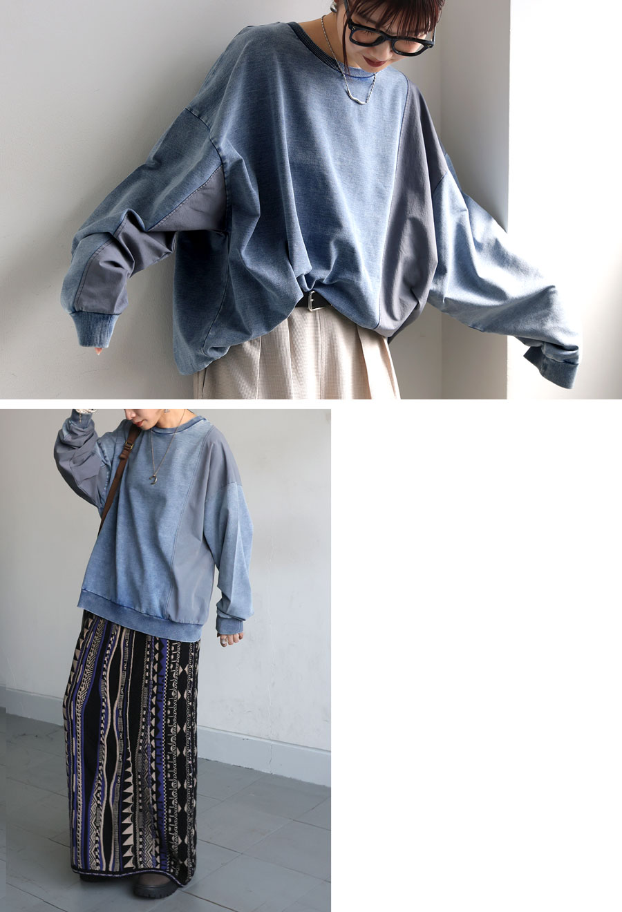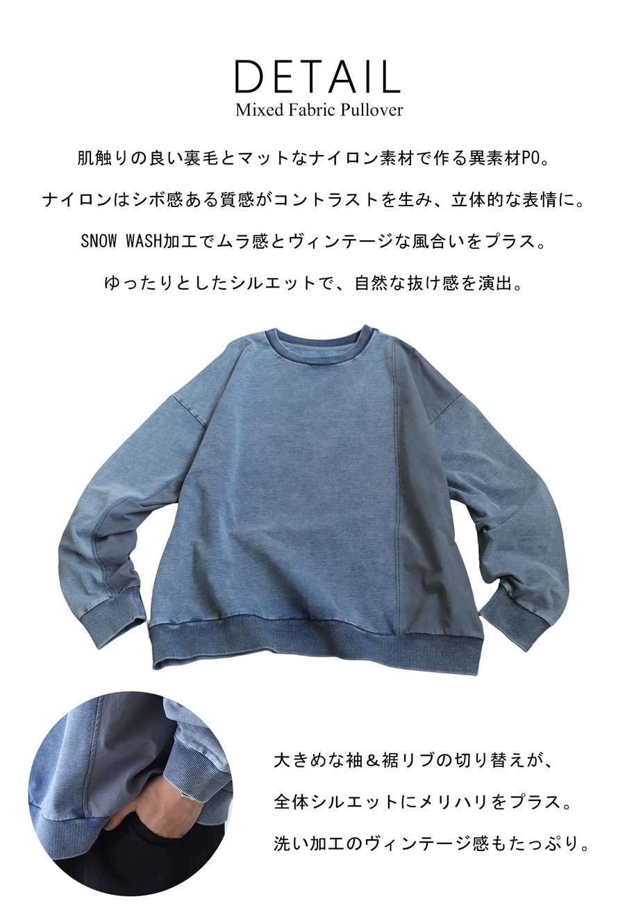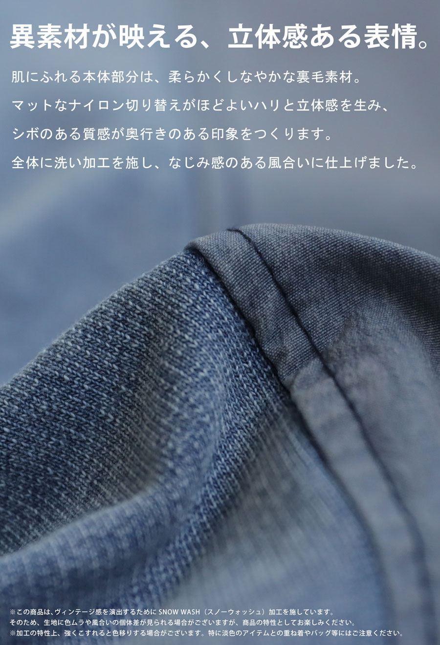 ナイロンとの異素材切替が映える、立体感のあるヴィンテージ風スウェットです。