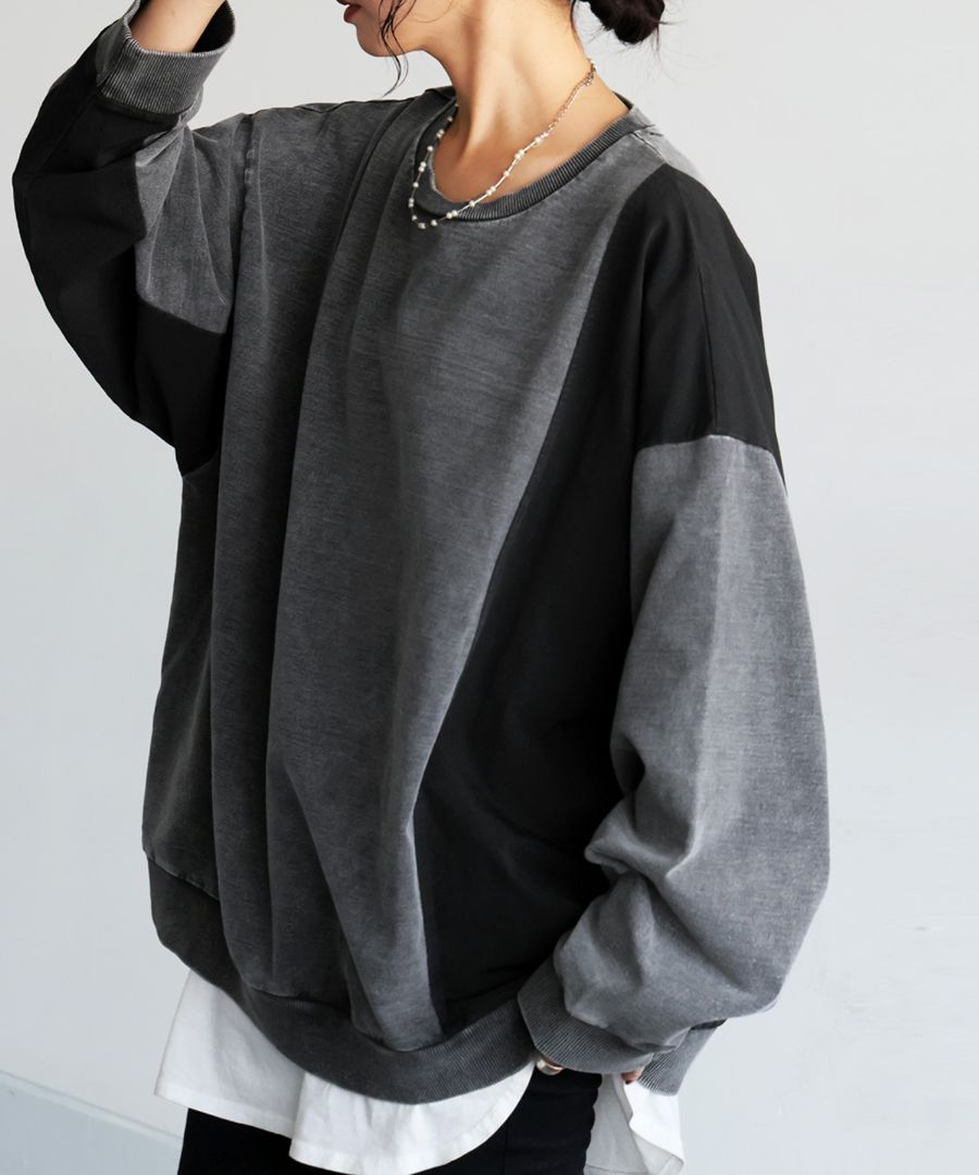 再入荷予定有!異素材切替 スウェット レディース プルオーバー 長袖 送料無料・メール便不可