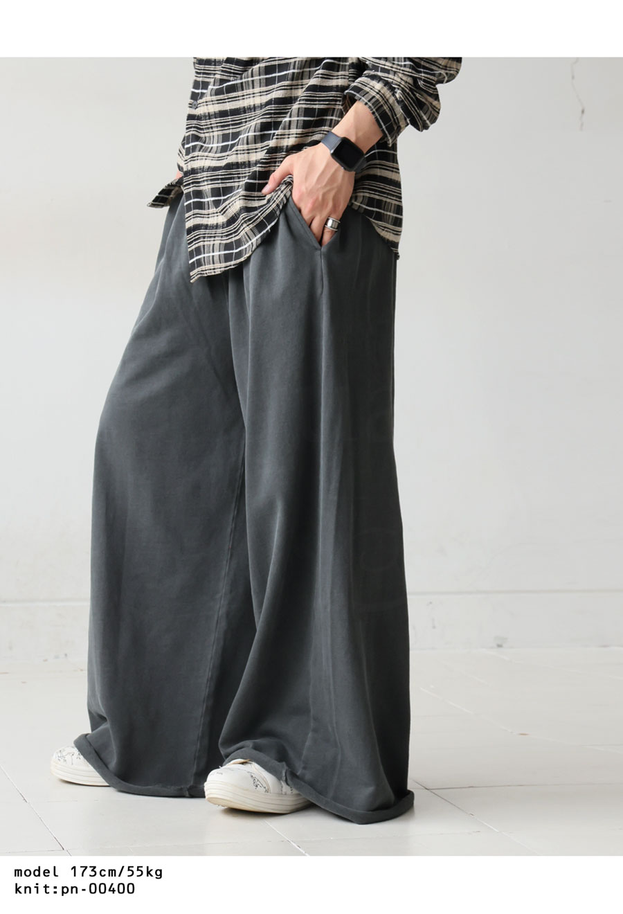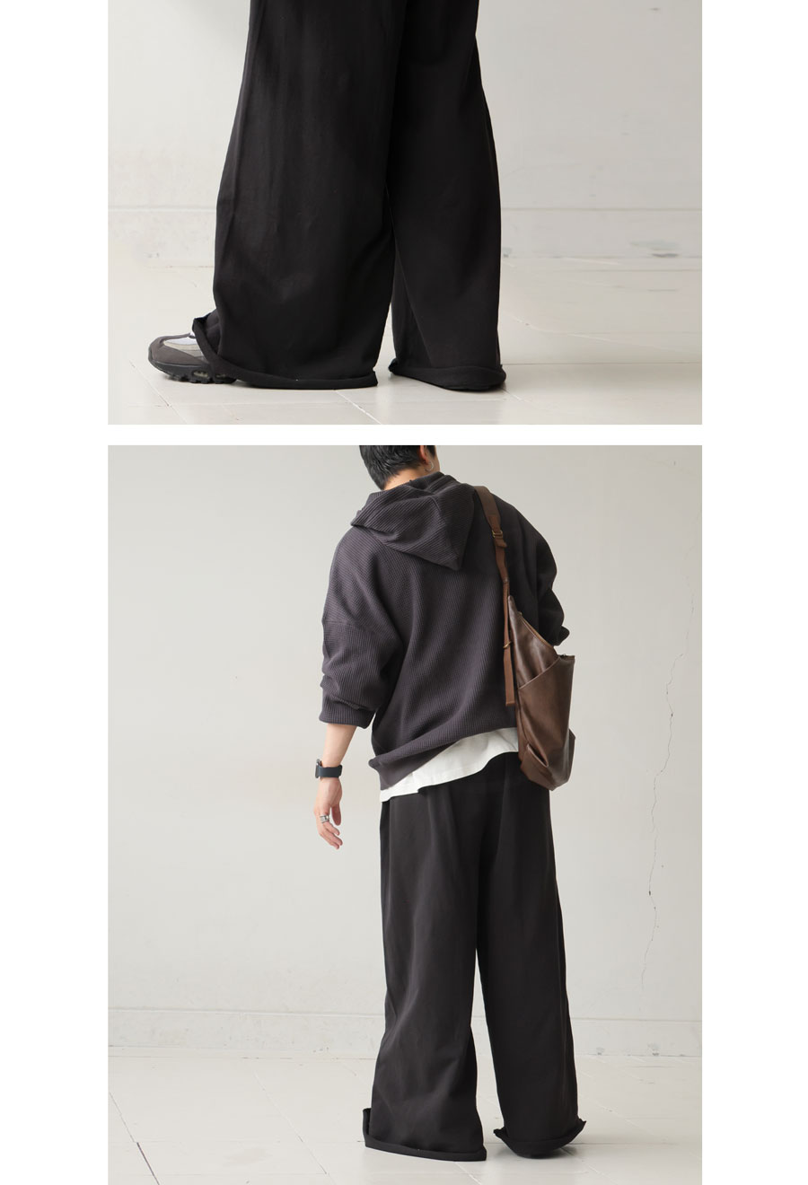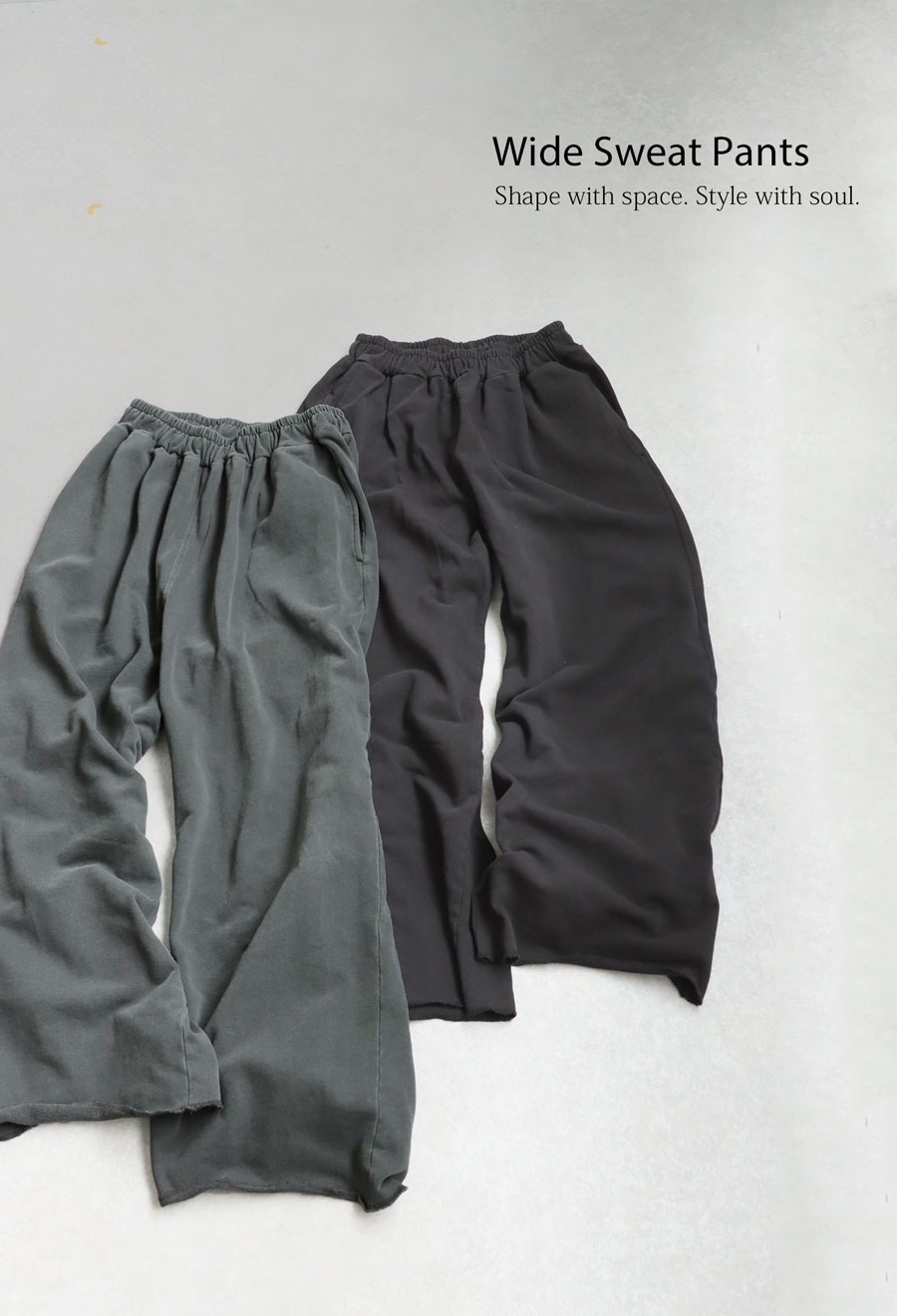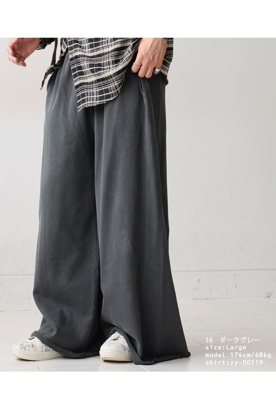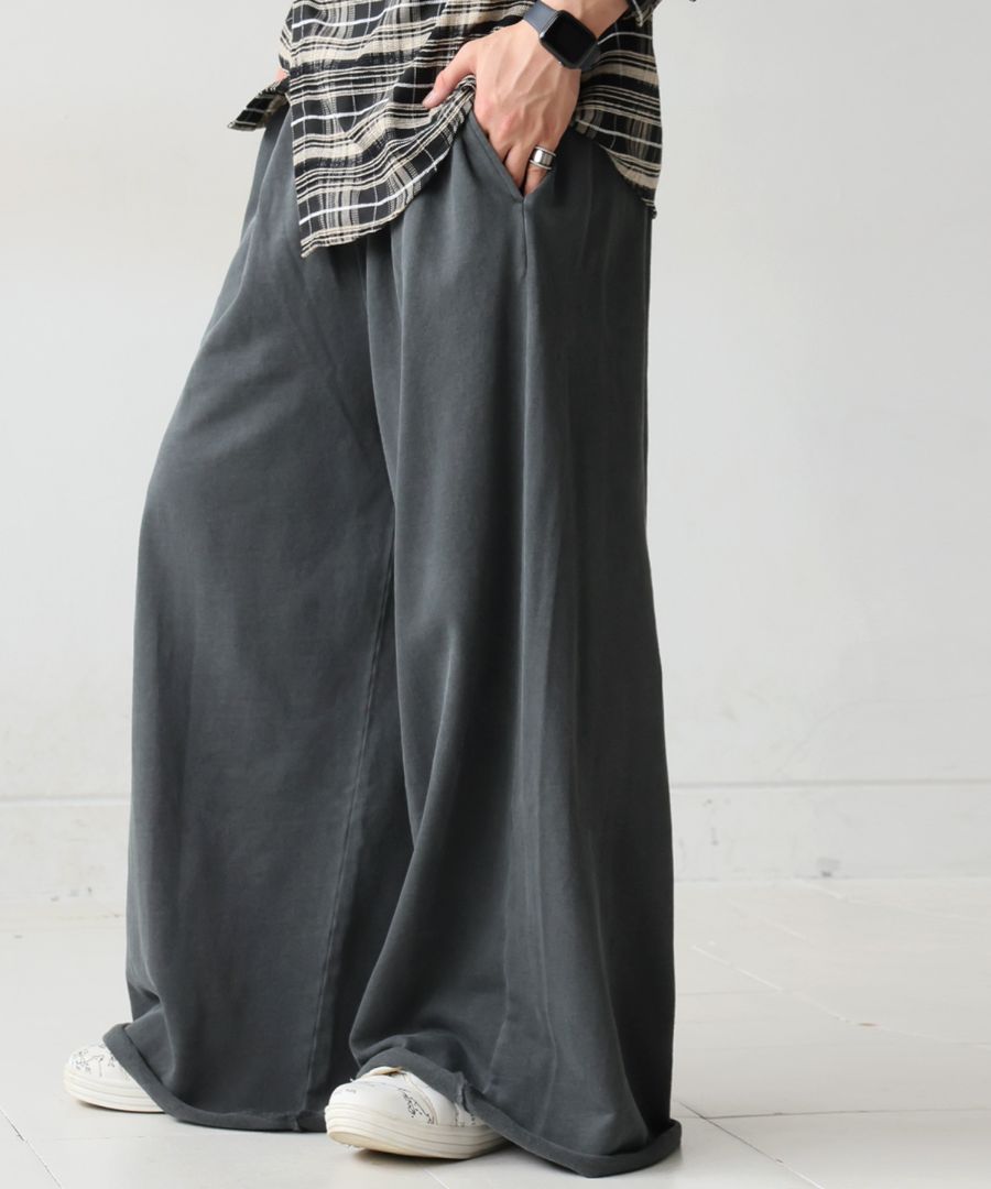 ピグメント加工による色むらが魅力の裏毛ワイドパンツが登場。