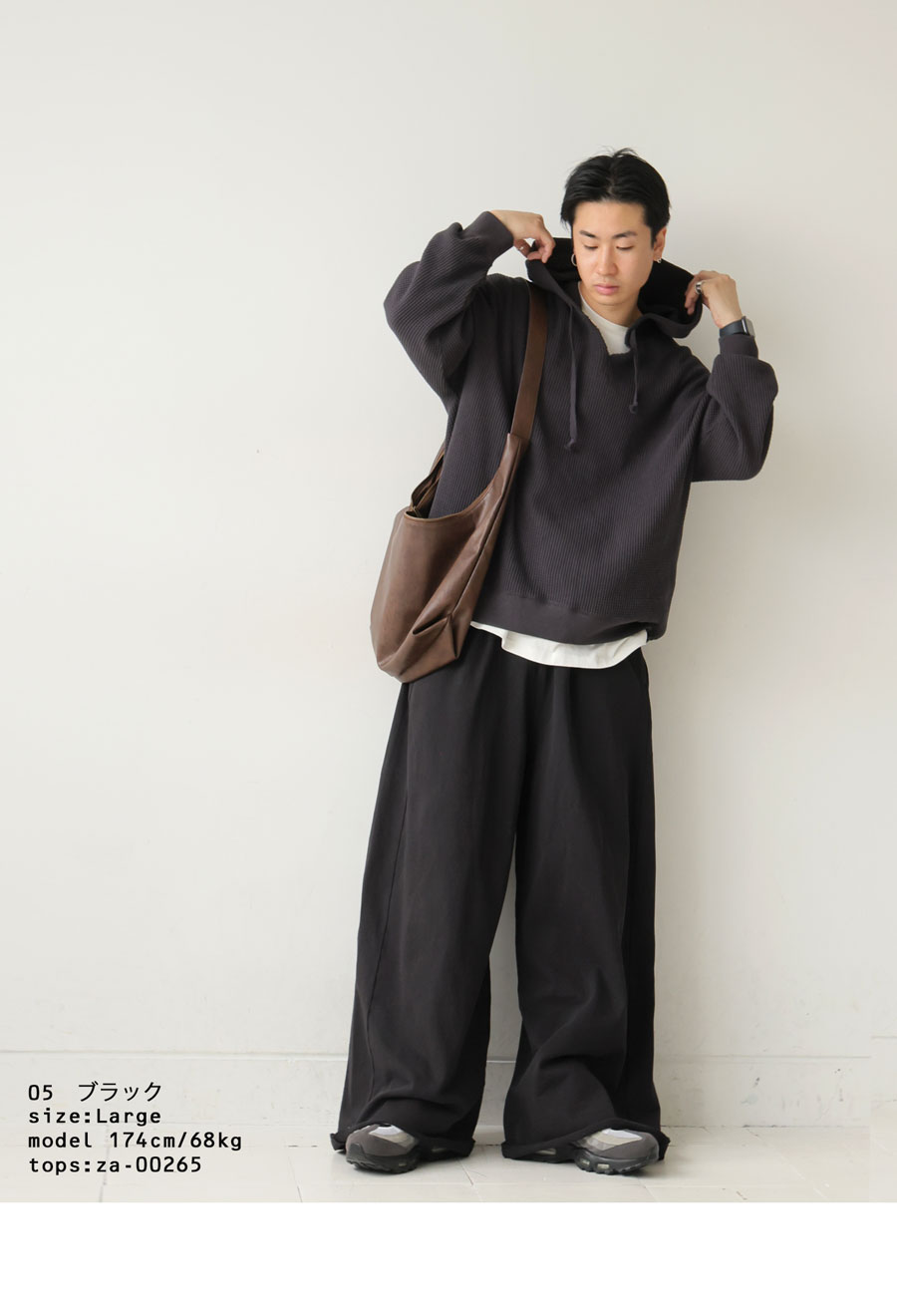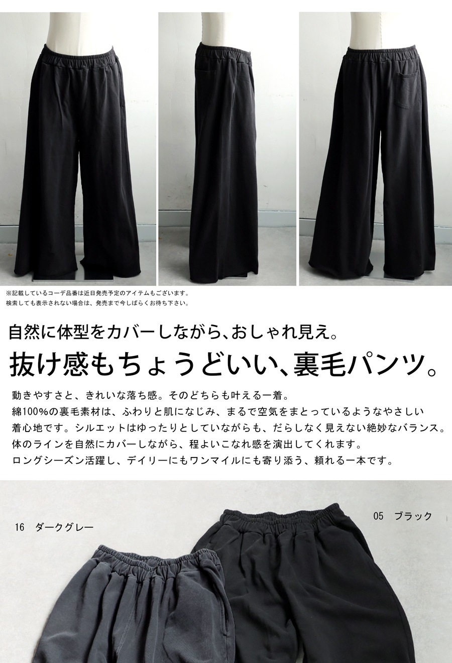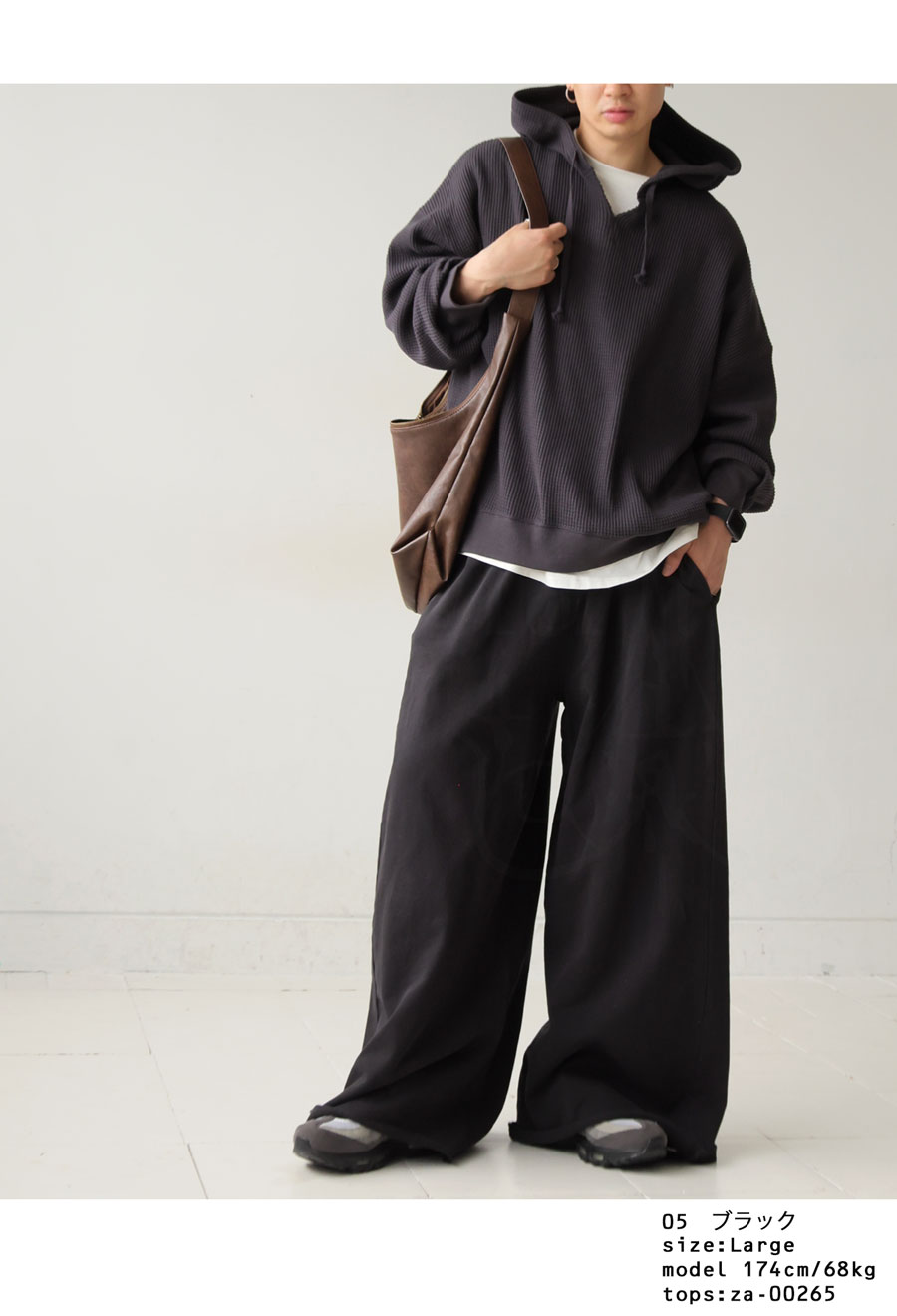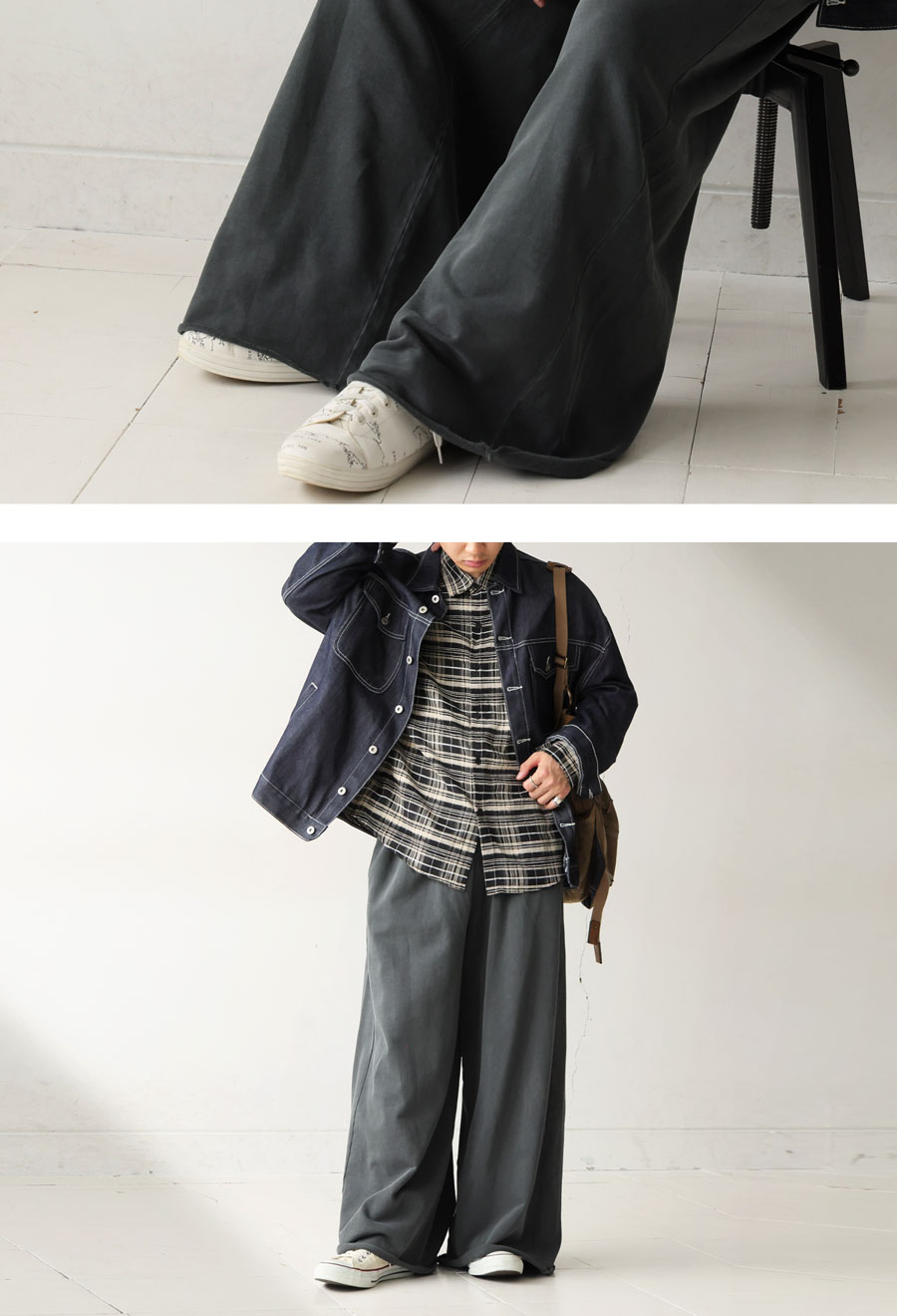 ピグメント加工による色むらが魅力の裏毛ワイドパンツが登場。