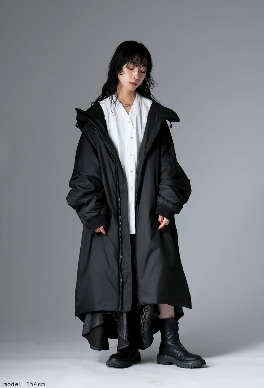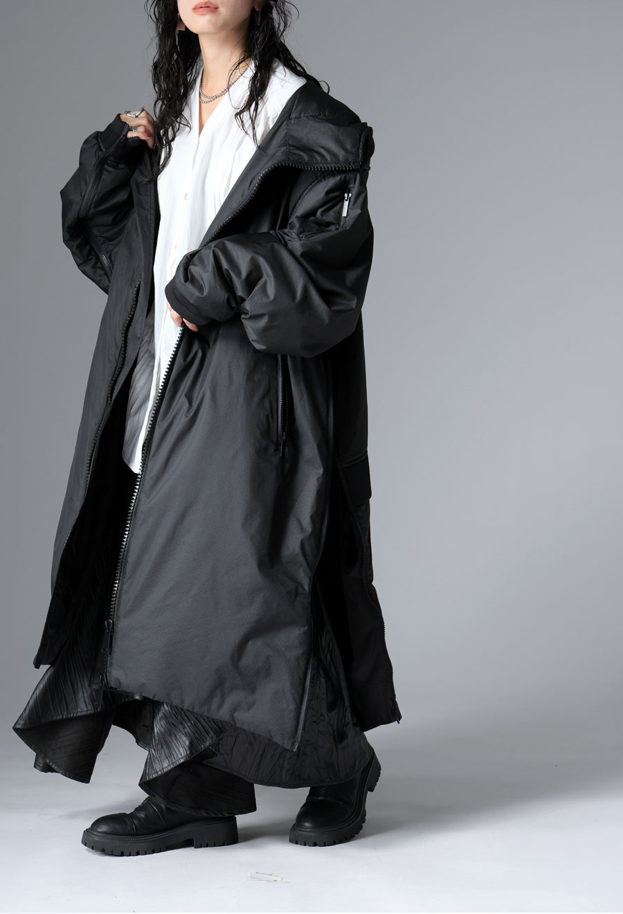 モードな表情と機能性を両立したコートは、ゆったりとした大きめサイズ感でユニセックス対応。