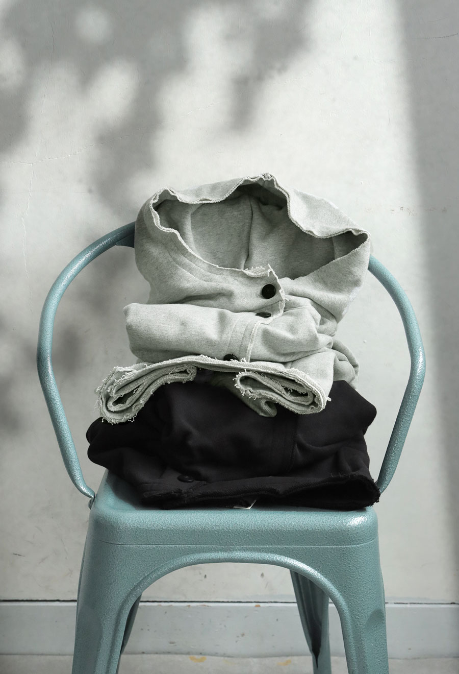 無造作に羽織るだけでサマになる、大人のためのパーカータイプの裏毛フーディー。