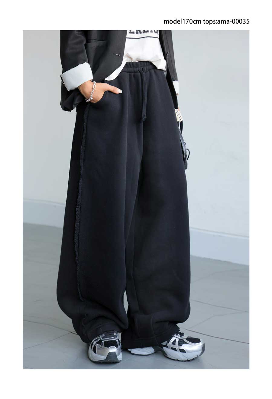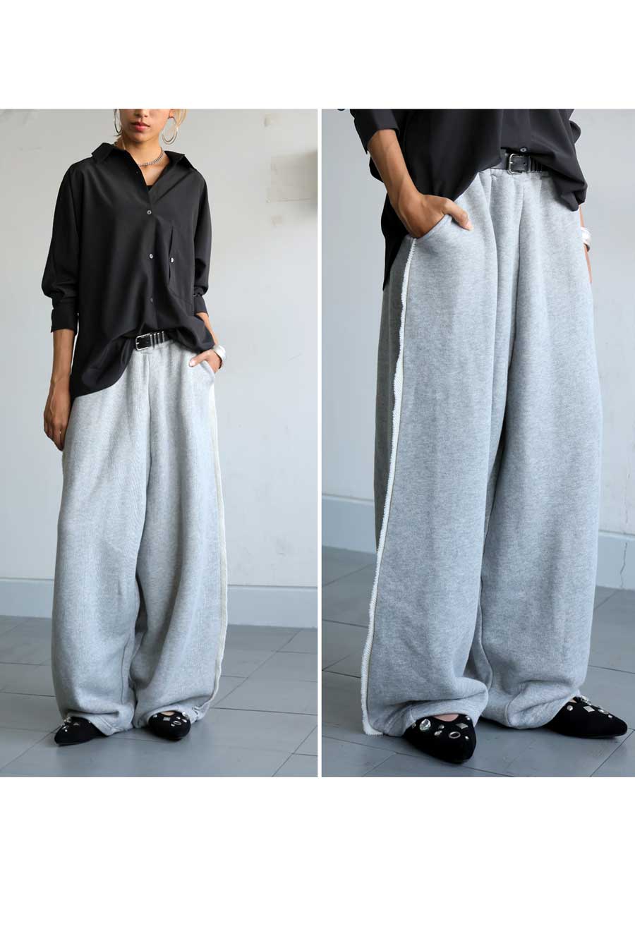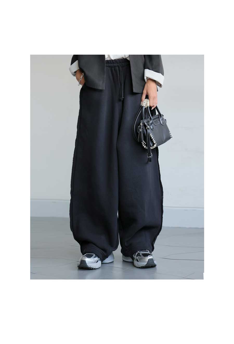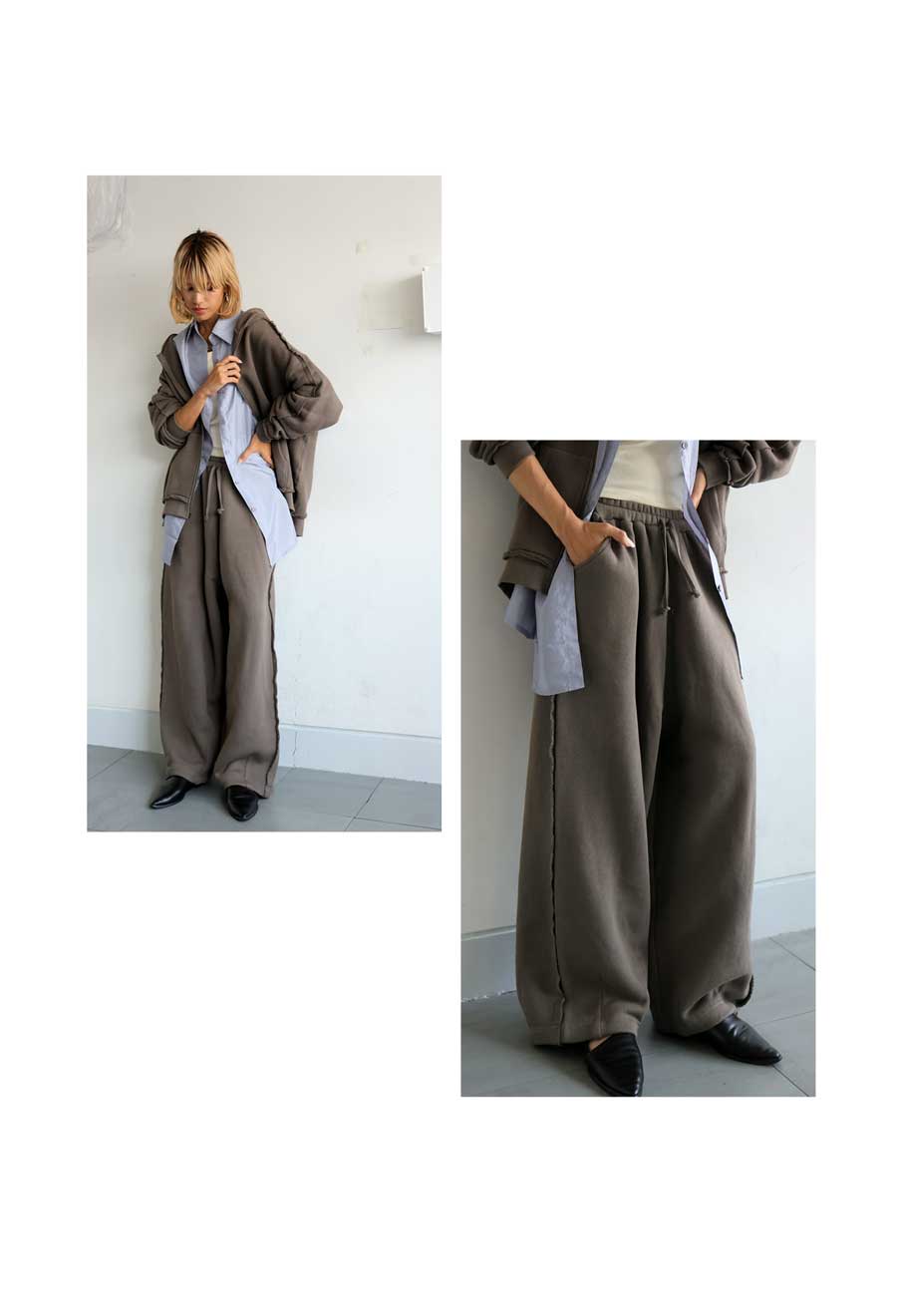 ポケット付きで実用性にも優れ、スウェットパンツのような気軽さも魅力。