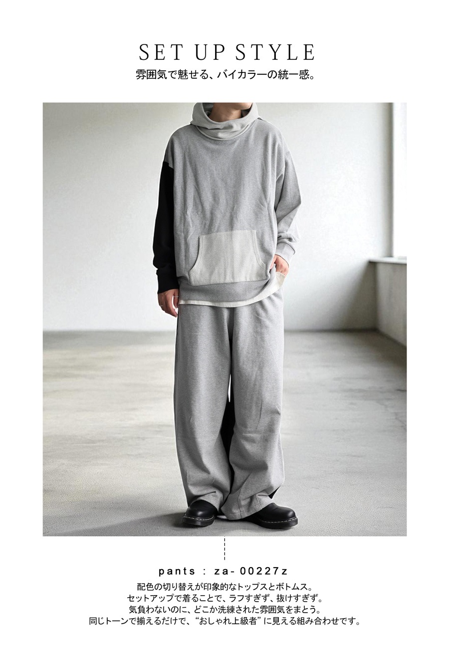 同素材のパンツ(品番:ZA-00277Z)とセットアップでの着用も可能で、統一感あるカジュアルスタイルが楽しめます。