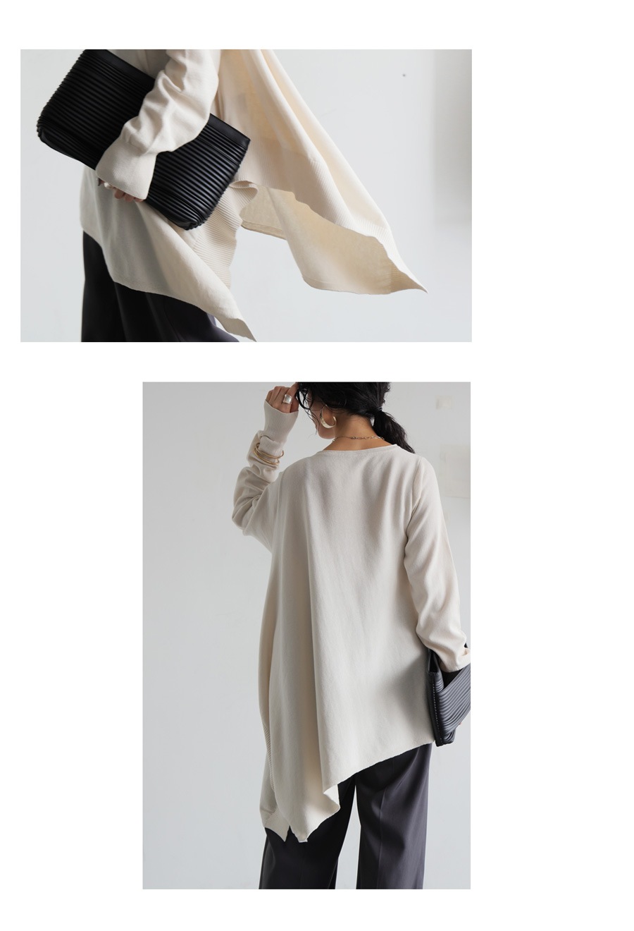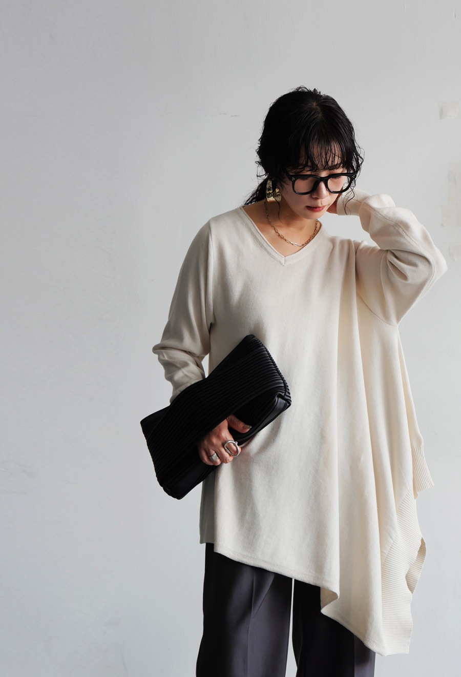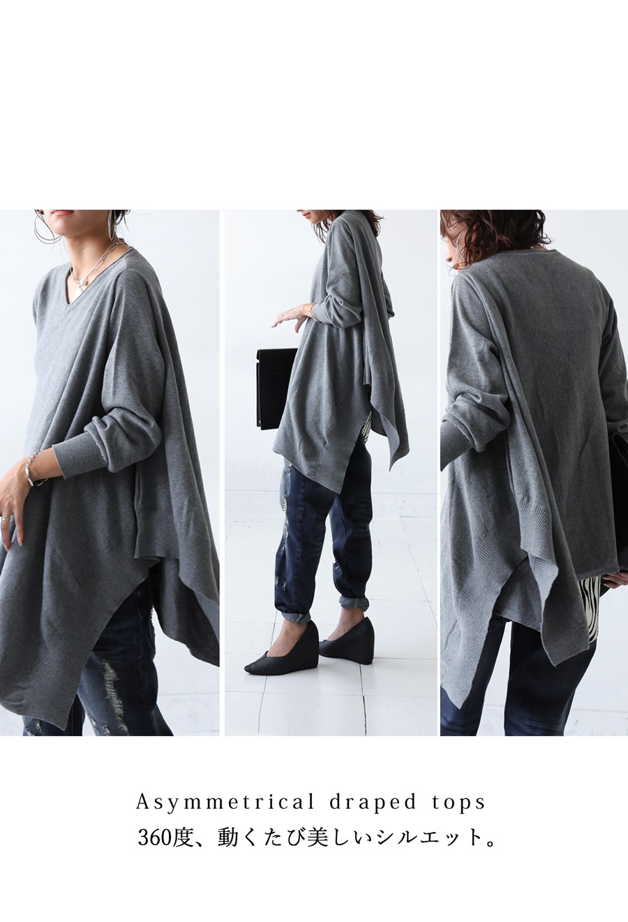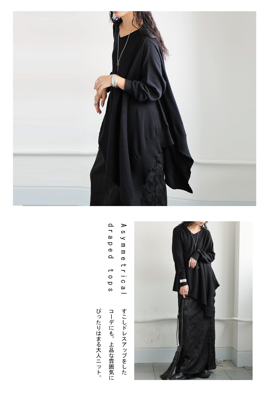 左右で表情が異なる非対称デザインが魅力のアシメニットトップスです。
