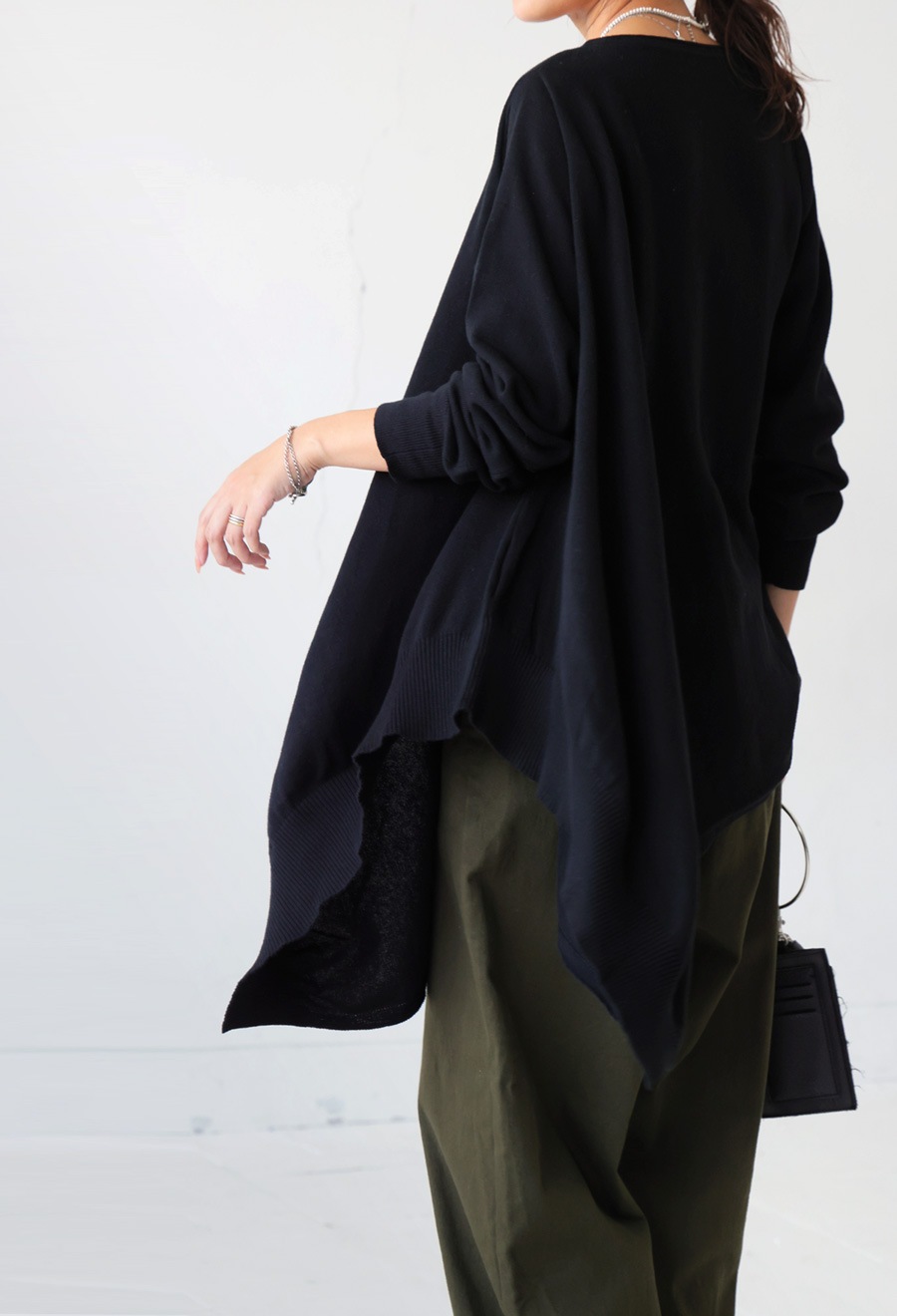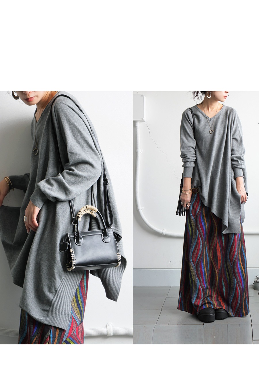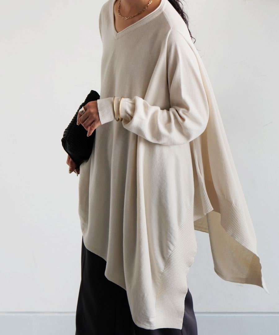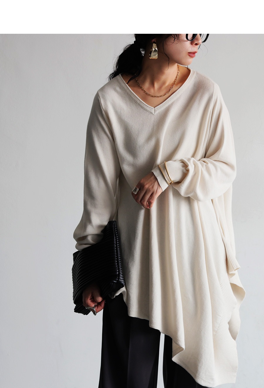 左右で表情が異なる非対称デザインが魅力のアシメニットトップスです。