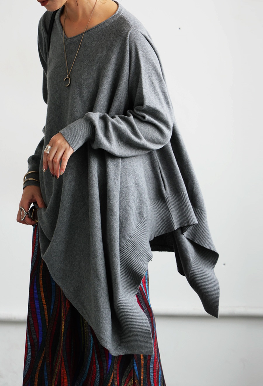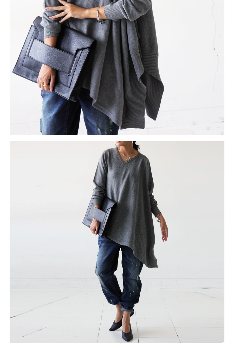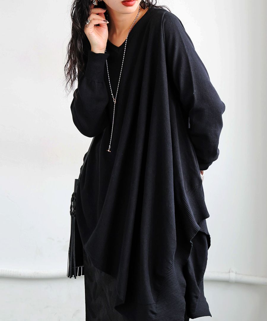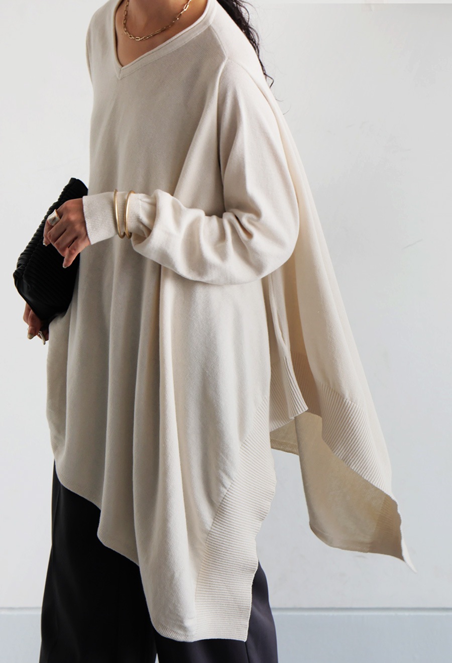 左右で表情が異なる非対称デザインが魅力のアシメニットトップスです。