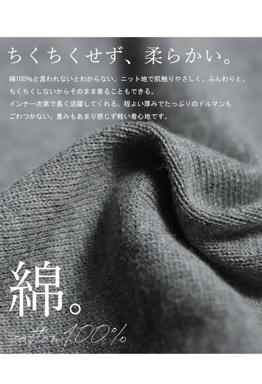綿100%のニット素材ならではの柔らかく軽やかな着心地で、ストレスフリーな一枚に。