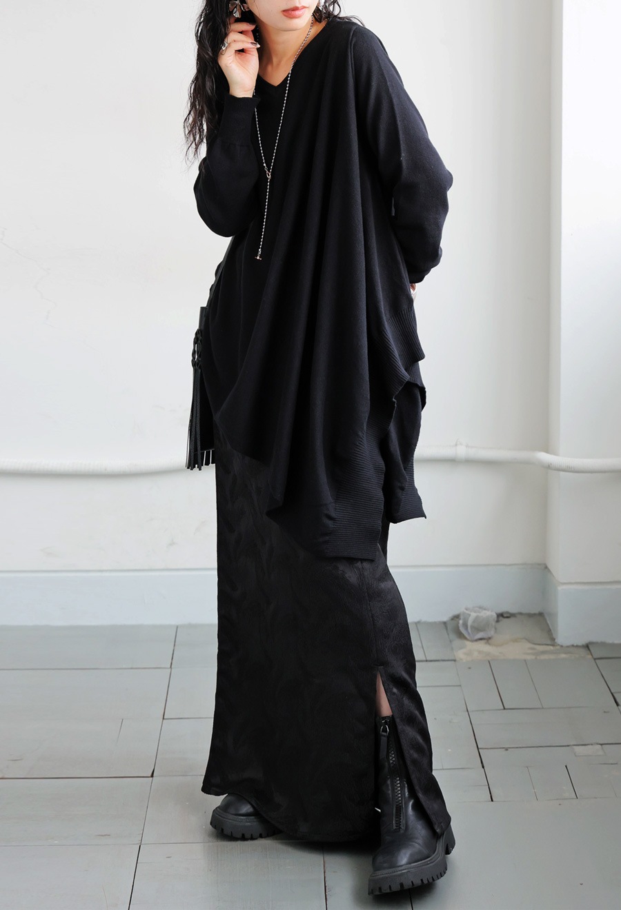 裾にかけて流れるような美しいドレープが生まれ、着るだけでこなれた雰囲気に。