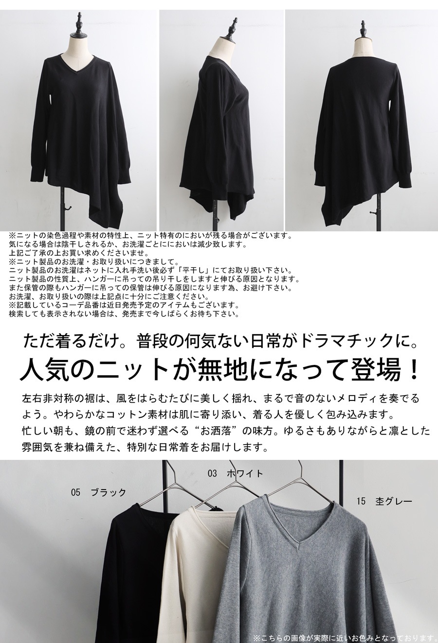 アシメ ニット レディース トップス 長袖 綿100 送料無料・再入荷 メール便不可