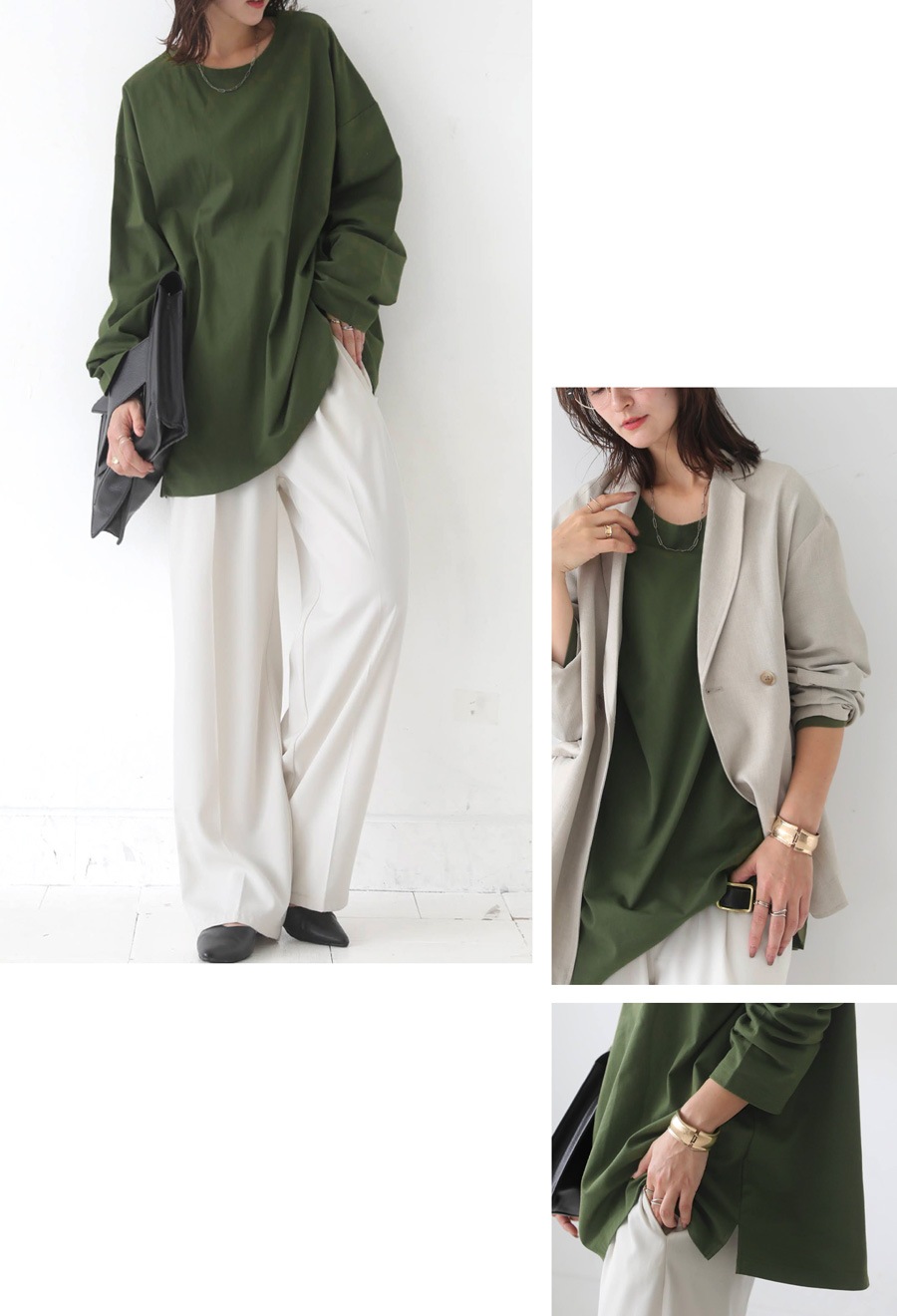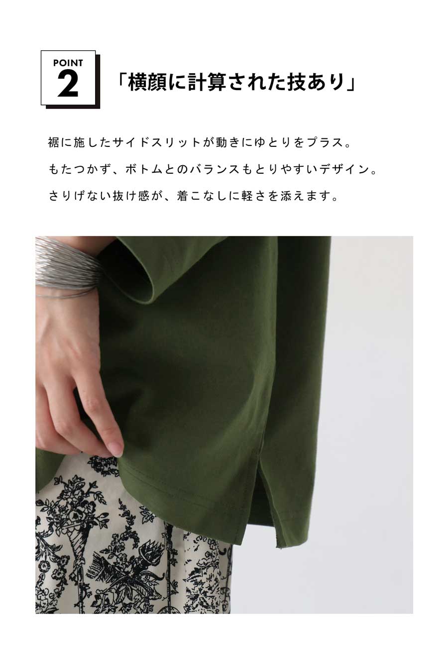 裾には深めのサイドスリットが入り、レイヤードにも活躍する丈感に。