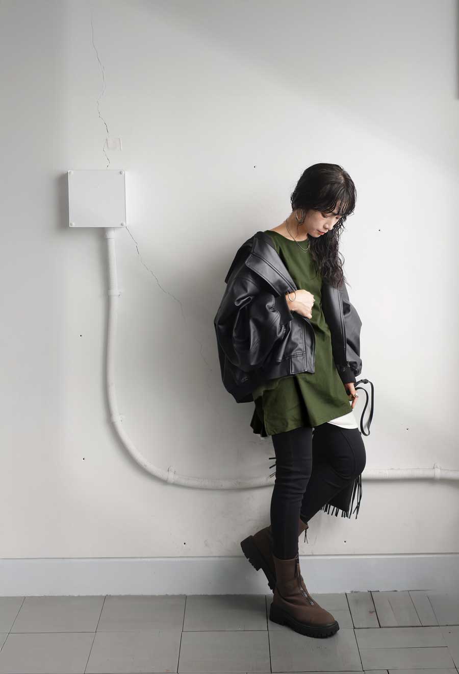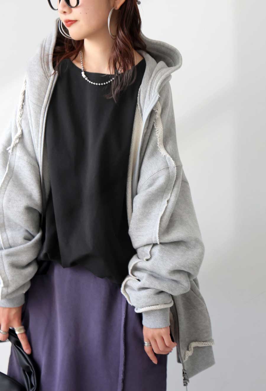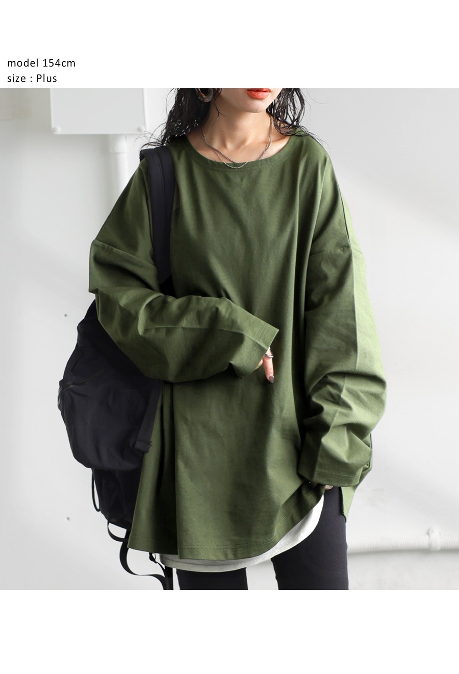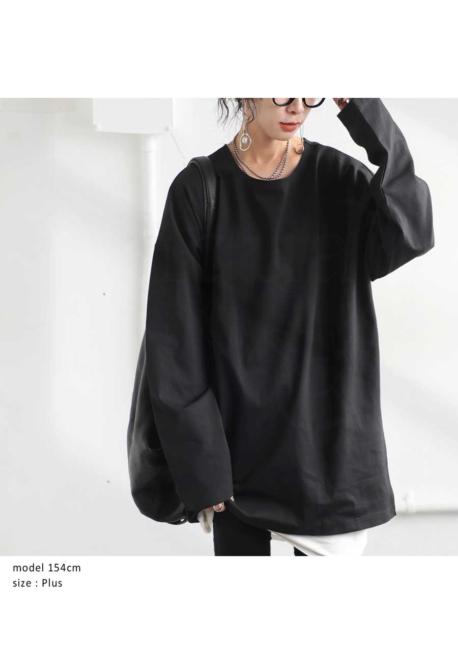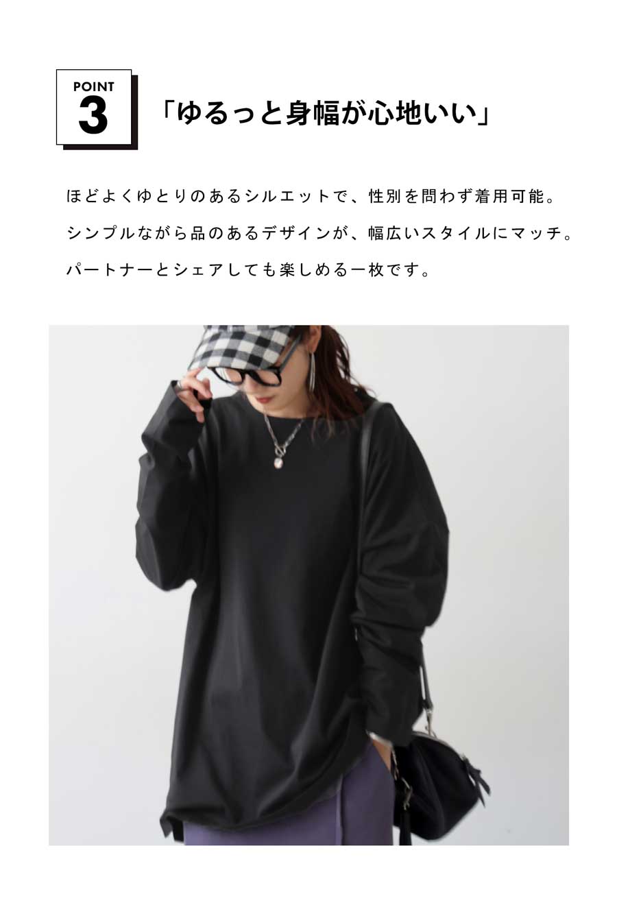 ドロップショルダーが自然な抜け感を演出し、体のラインを拾いにくいゆったりとした形状も魅力です。