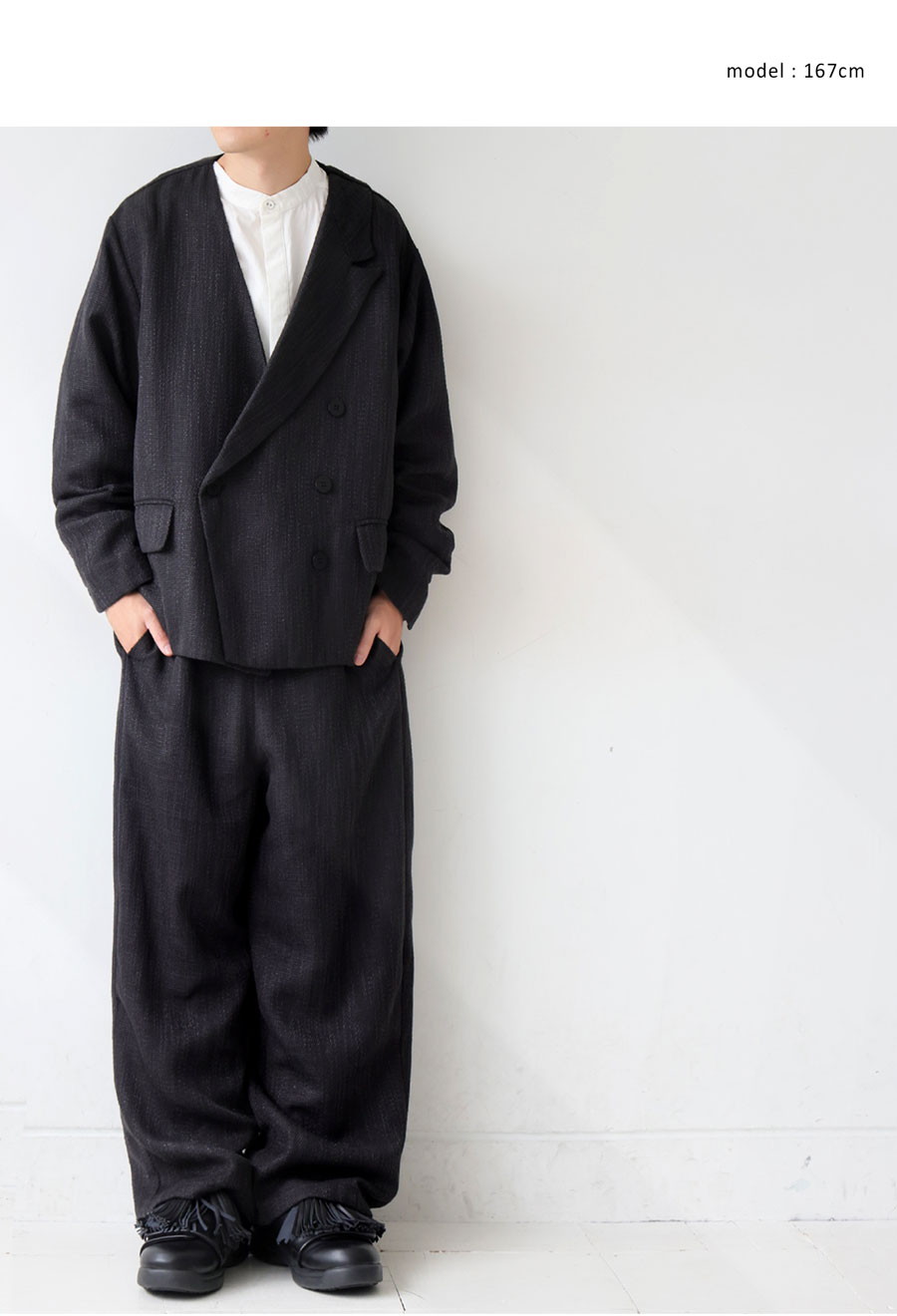 同素材のパンツとセットアップで着用すれば、フォーマルやビジネスカジュアルにも対応可能です。