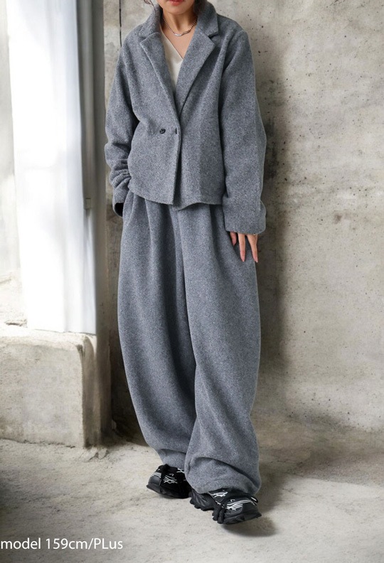 同素材ジャケット(KYO-0006)とのセットアップ対応で、ワンランク上のコーデにも対応。