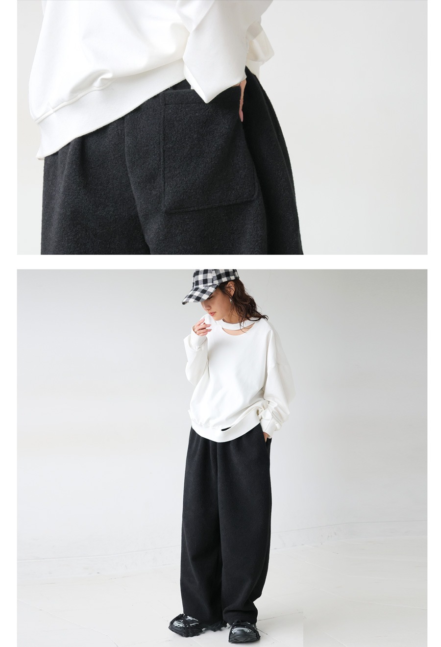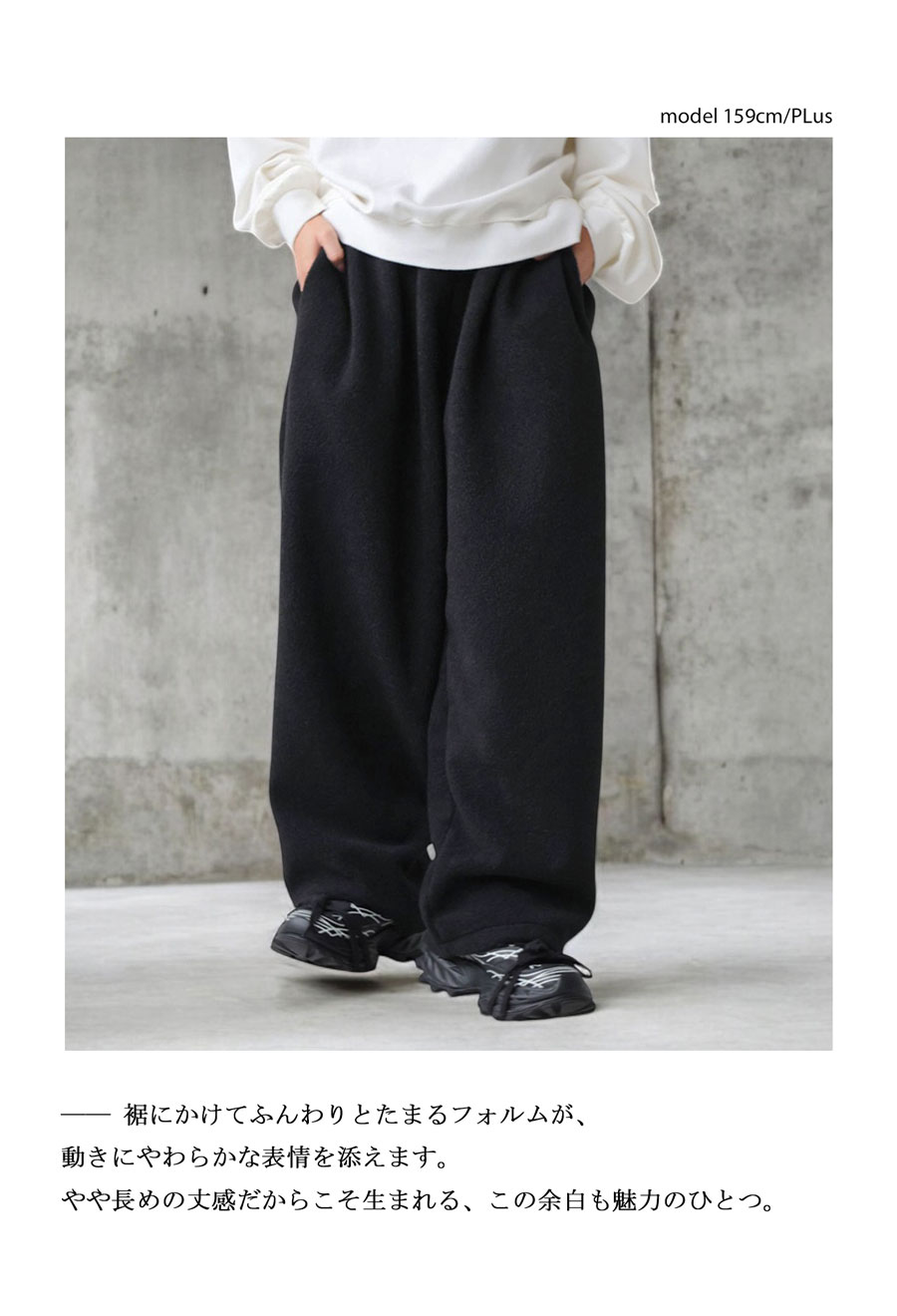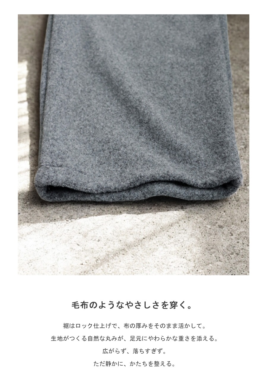 ふんわりとした起毛素材で、軽さと温もりを両立しながらリラックス感ある穿き心地を実現します。