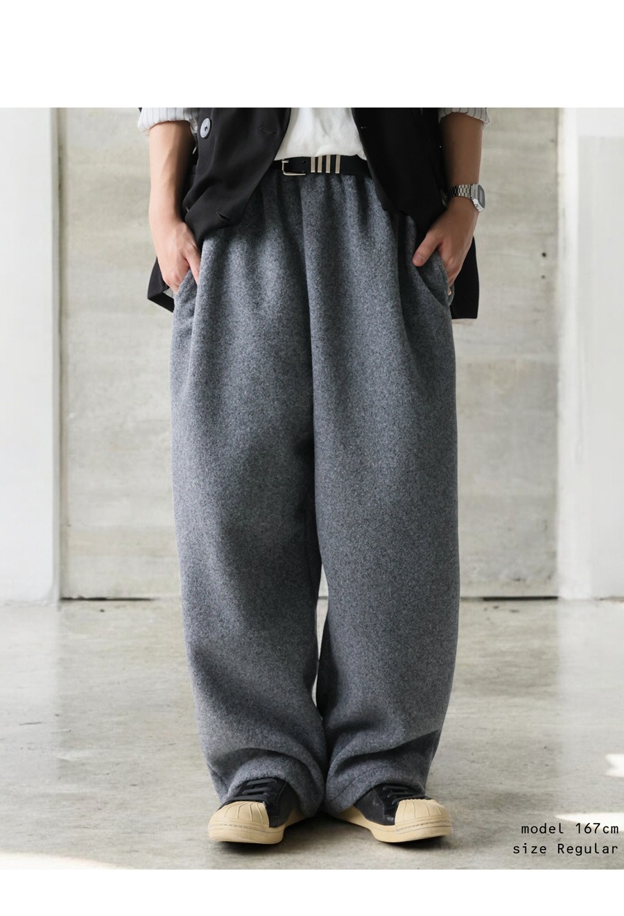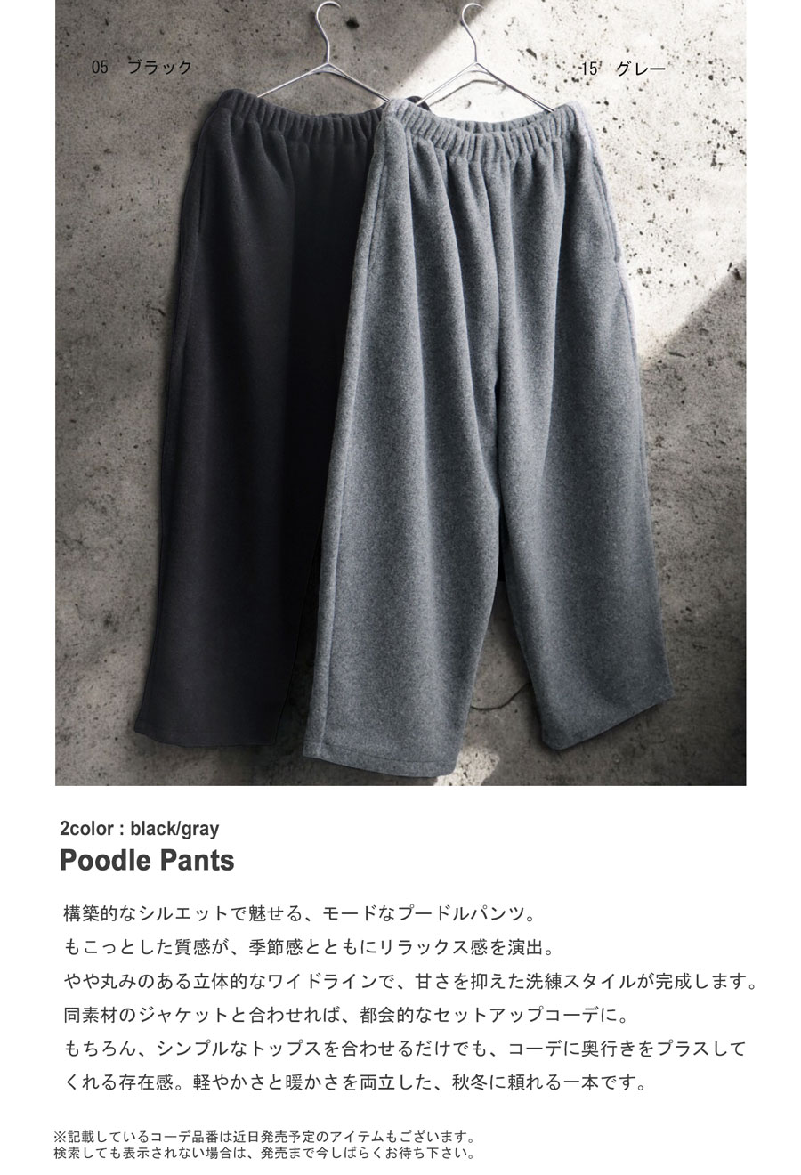 ワイドなシルエットと起毛素材で仕上げたプードルパンツが登場。