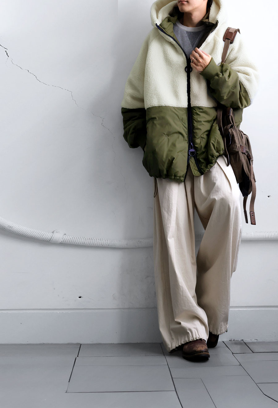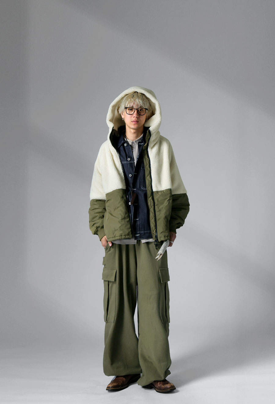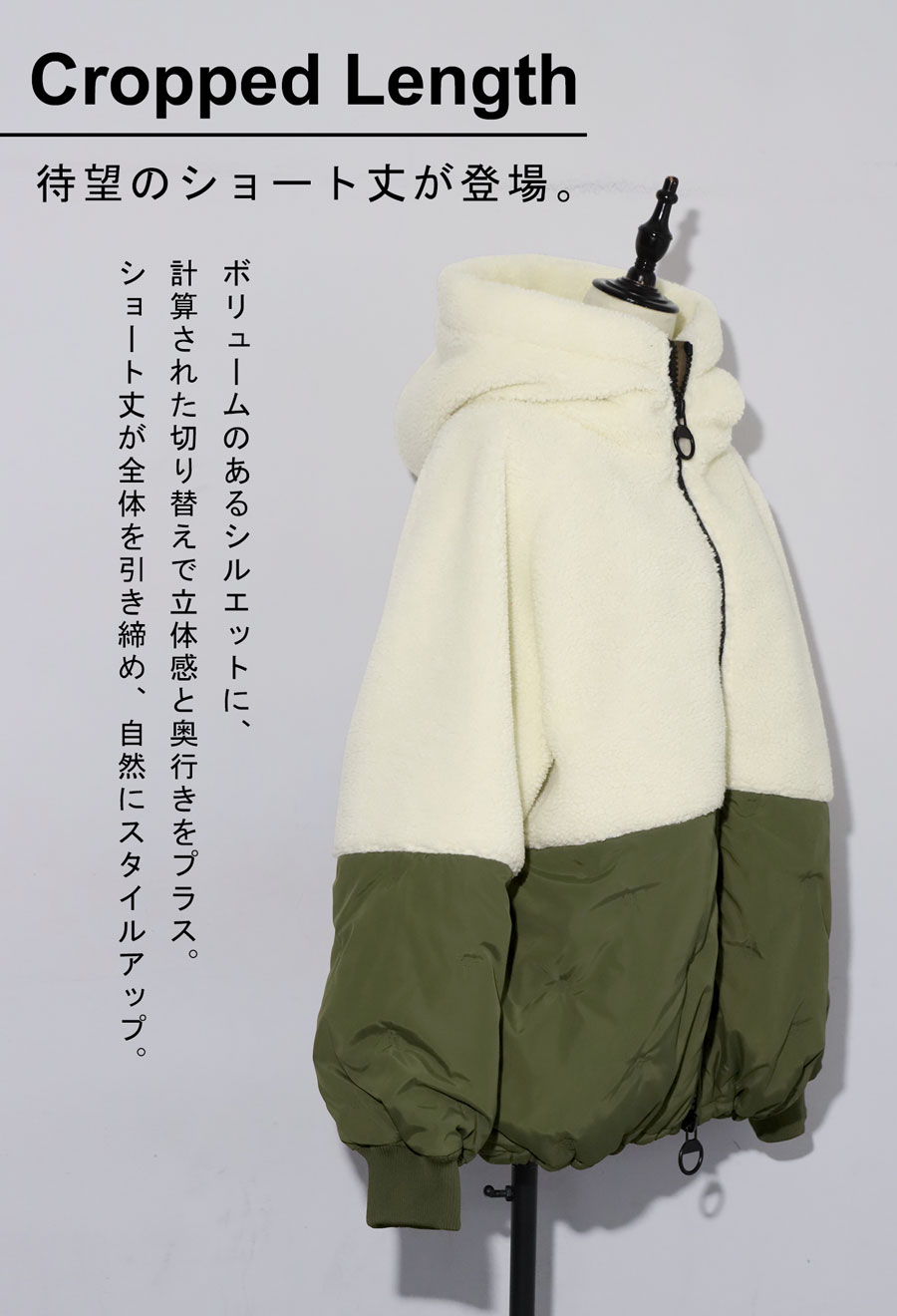 異素材の切り替えが際立つショート丈の中綿入りアウターが、antiquaから登場。