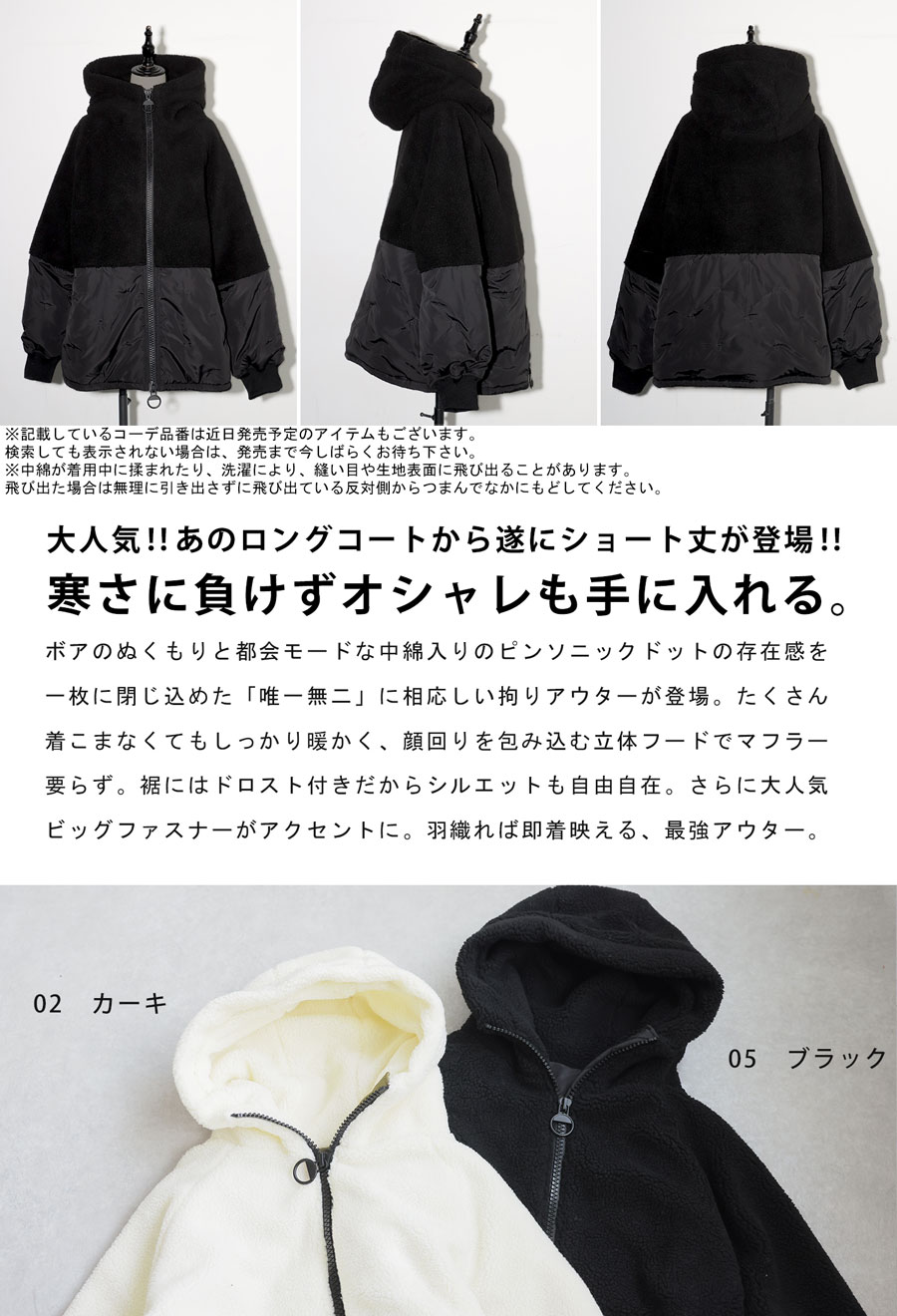 見た目のボリュームに反して軽くて暖かい、秋冬に最適な防寒ボアコートです。