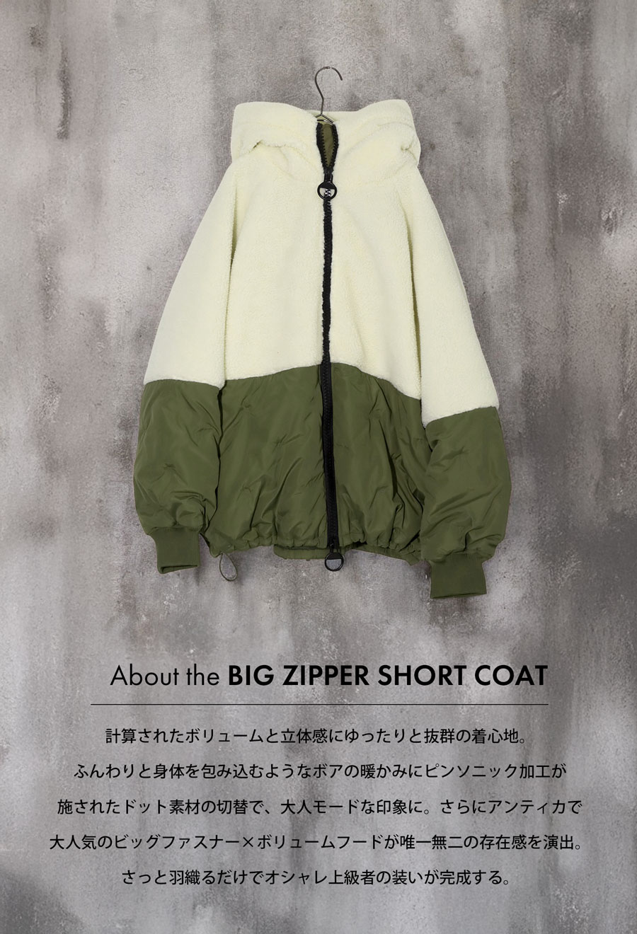 目を引くビッグファスナーがデザインアクセントとなり、都会的で洗練された印象に。