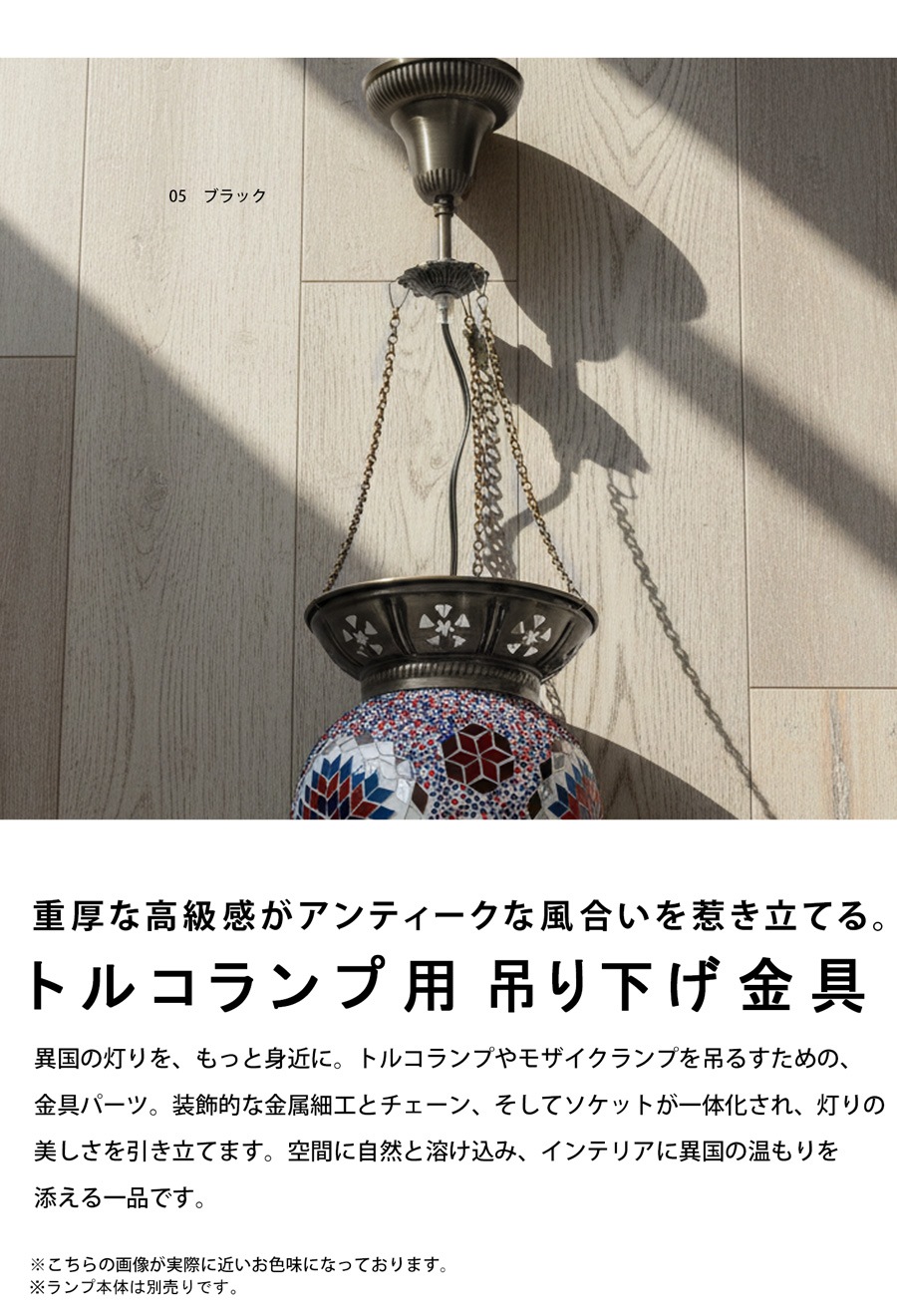 トルコランプやモザイクランプを吊るすための、専用の照明器具セットです。