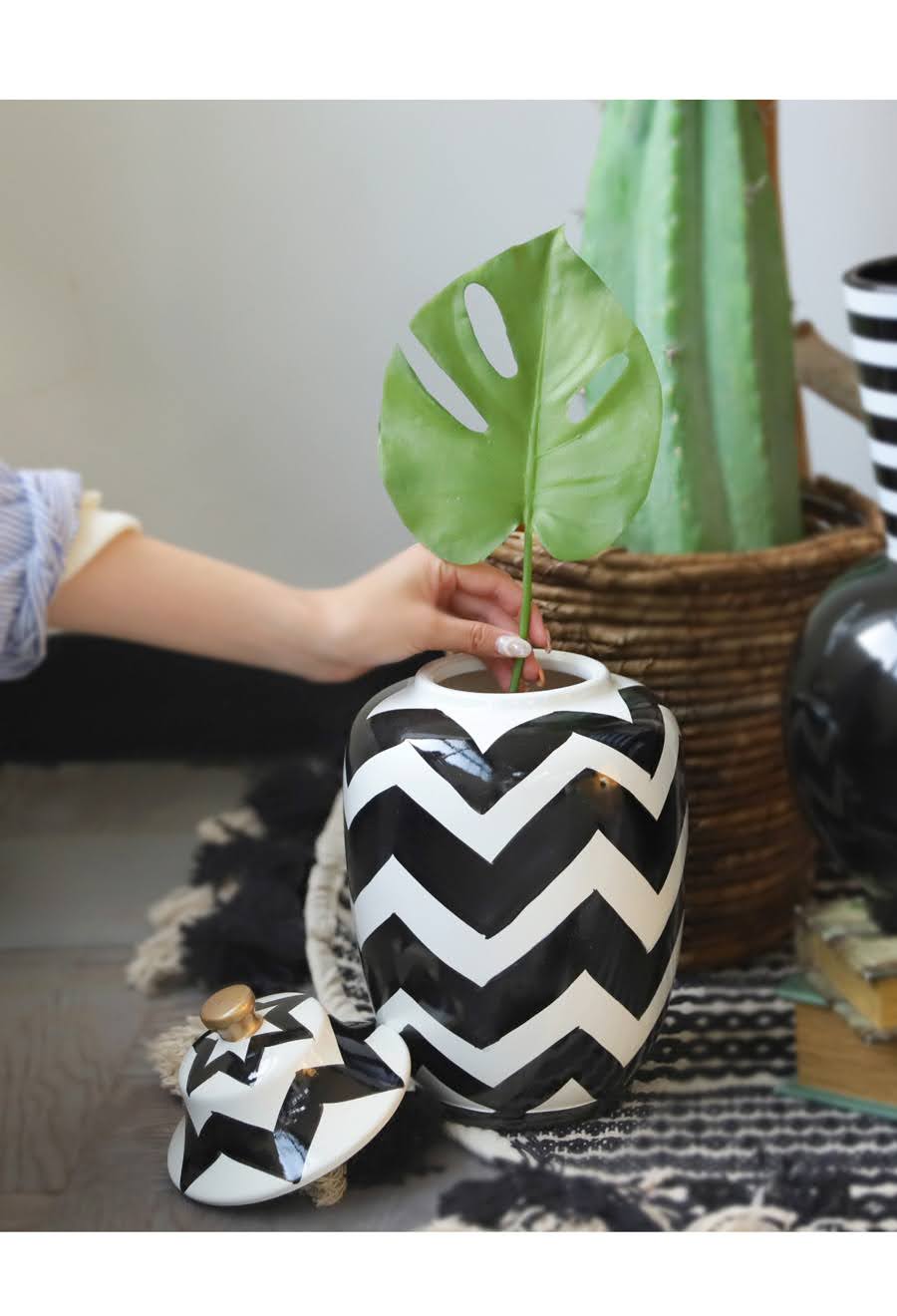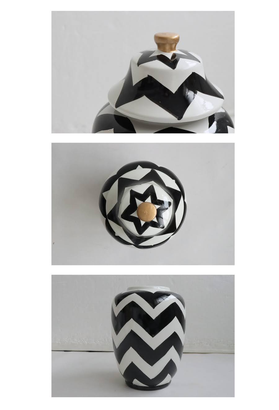 ジグザグ柄 蓋付きジャー 陶器 インテリア雑貨 オブジェ 置物 M・メール便不可