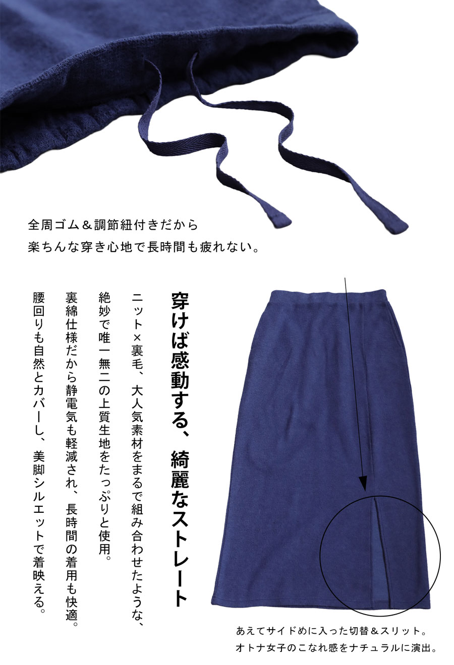 すとんと落ちる形状が美しい、ストレートシルエットのロングスカートです。