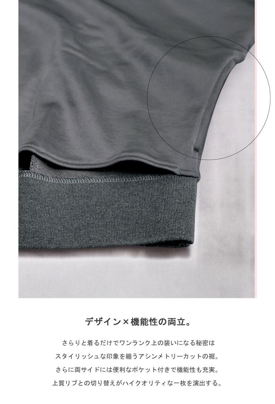 素材は、品ある光沢と適度な張り感を備えた裏毛サテンで、高級感と動きやすさを両立。