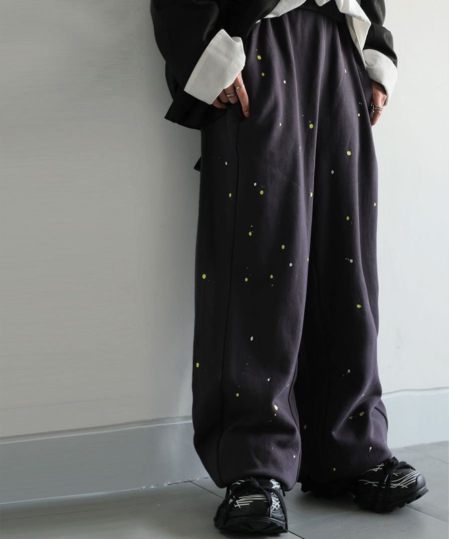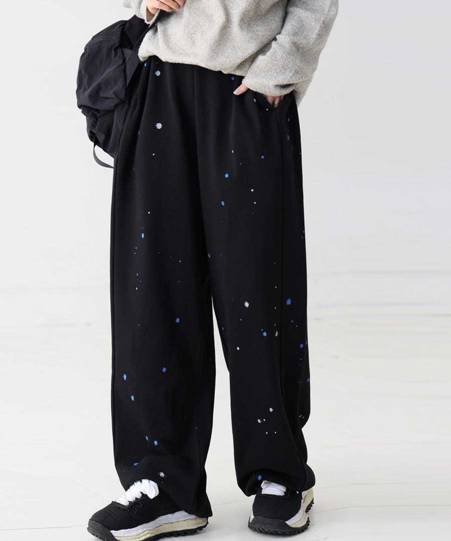 手描き柄 裏毛スウェットパンツ レディース ワイド 送料無料・メール便不可