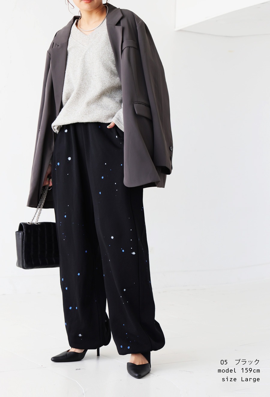 形状はゆったりとしたワイドシルエットで、体型カバーにも最適です。