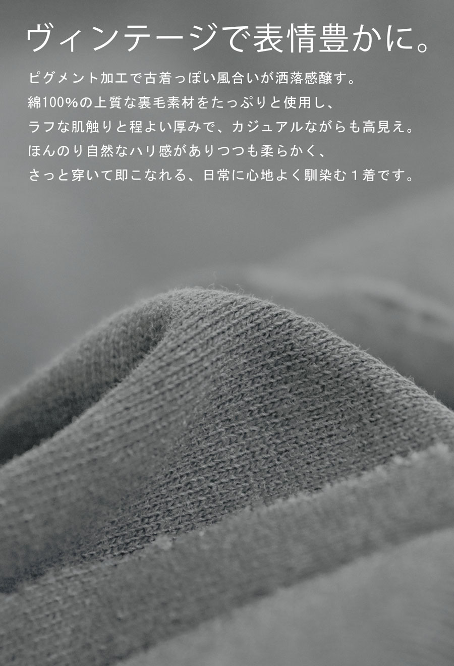 コットン100%の裏毛素材を使用し、肌に優しく心地よい着用感が魅力です。