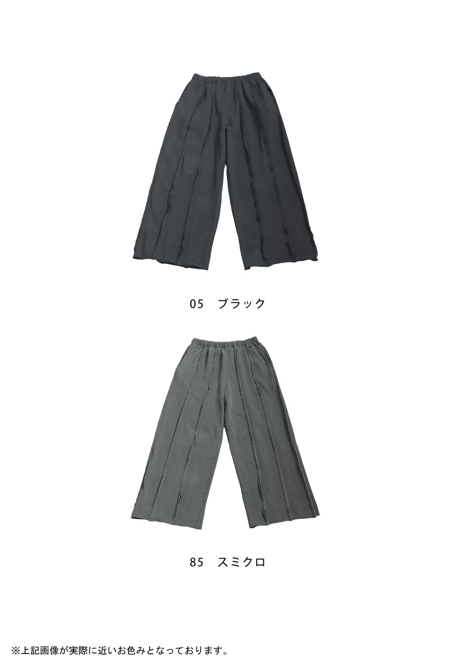 全体的にゆったりとしたつくりで、脚のラインを拾いにくく体型カバーにも効果的。