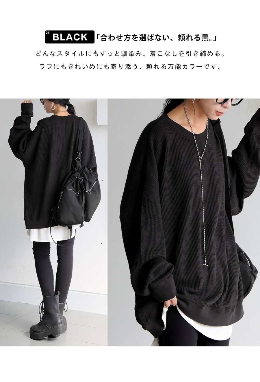 レイヤードにも重宝する着回し力と、ユニセックス仕様のデザインでリンクコーデにもおすすめです。