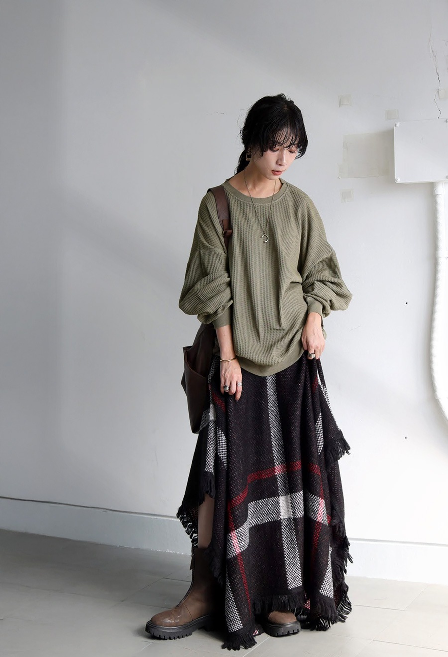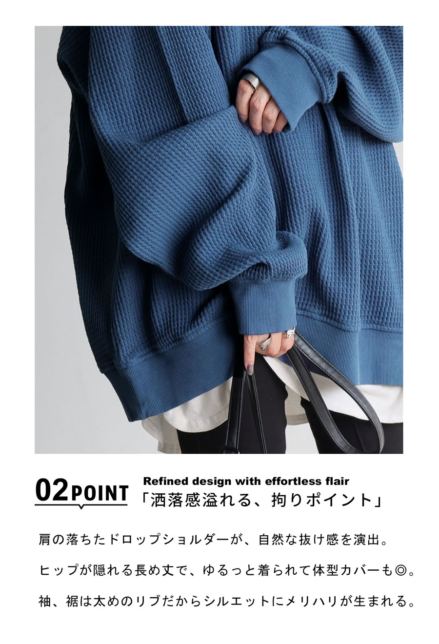 ヒップを覆う丈感とゆったりとしたシルエットが、自然に体型カバーを叶えてくれます。