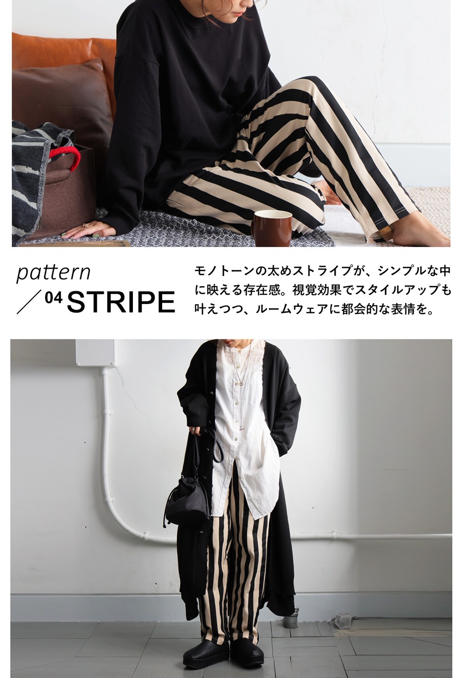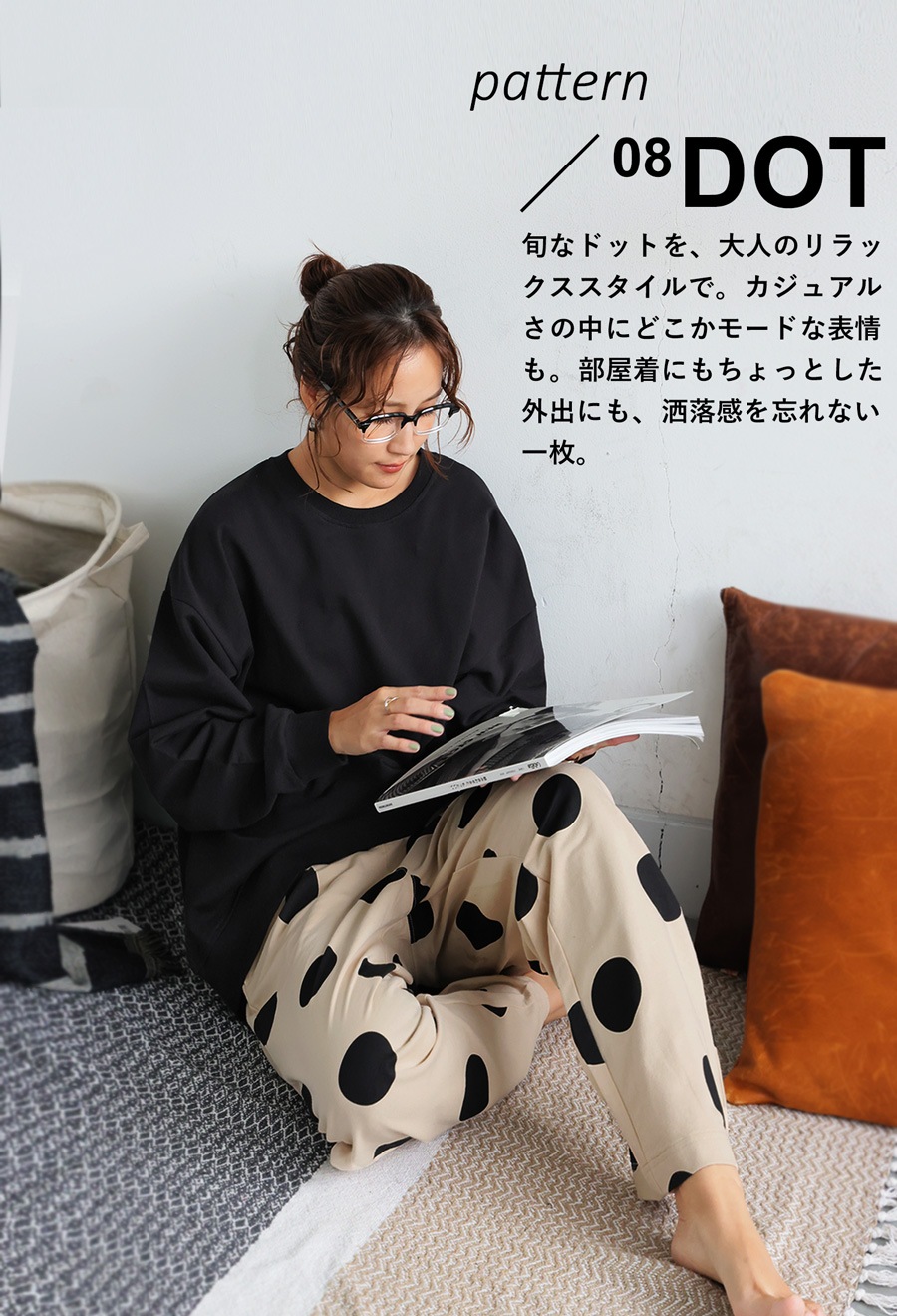 【使用シーン】デイリー、お出かけ、ワンマイル、在宅ワーク、リラックスタイム、部屋着、カフェ巡り、ショッピング、テレワーク、ドライブ、セットアップ
